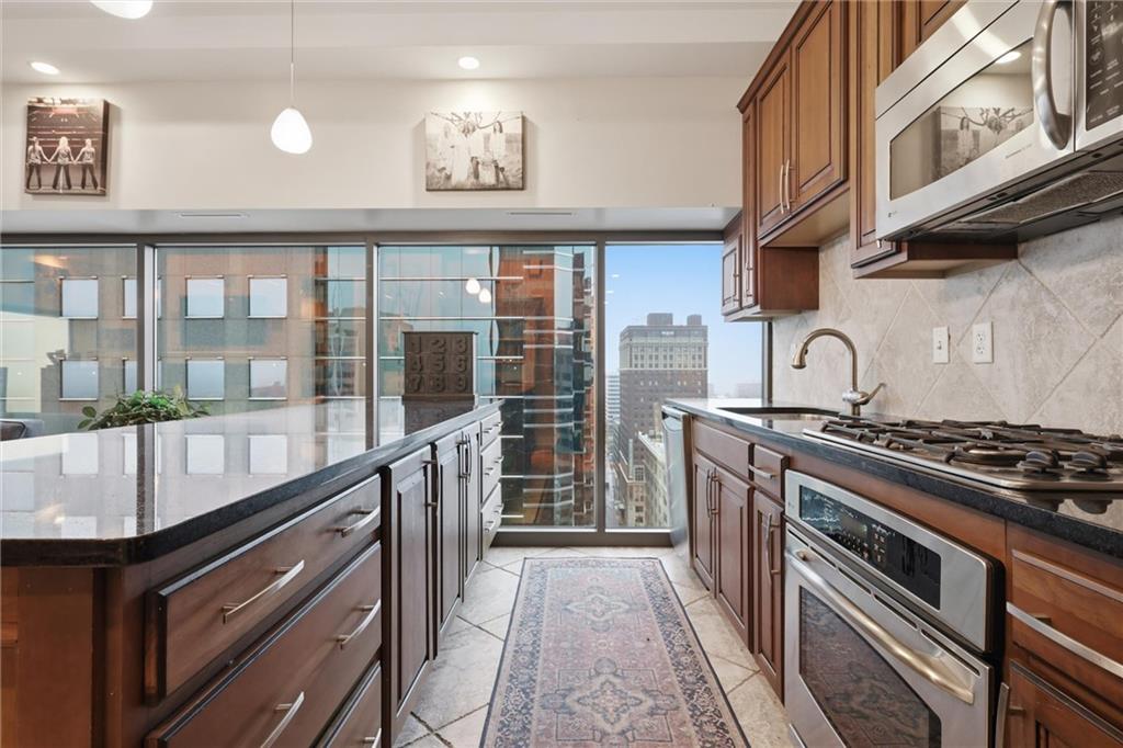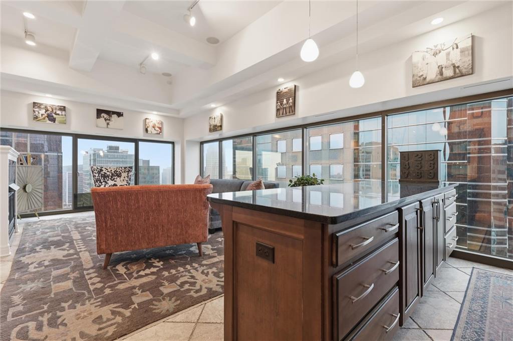 Perched on the 17th floor, this stunning 2-bedroom, 2.5-bath high-rise condo offers breathtaking views of the Kansas City skyline and the ultimate in walkable downtown living. The open living space features soaring ceilings, expansive windows, and incredible natural light, creating a dramatic setting for both everyday living and entertaining. The kitchen offers stainless steel appliances, a gas cooktop, and generous counter space, flowing seamlessly into the spacious living area where floor-to-ceiling windows frame the downtown skyline. The primary suite provides a peaceful retreat with beautiful city views and ample space, while the second bedroom and additional bath offer flexibility for guests or a home office. Residents enjoy exceptional building amenities, including 24-hour concierge service, a fitness center, a rooftop pool, a party room, secure building access, storage, and two garage parking spaces. A recent HVAC system upgrade (less than two years old) adds additional peace of mind. Located in the heart of downtown Kansas City with streetcar access just steps away, this home places restaurants, entertainment, and vibrant city life right outside your door!
