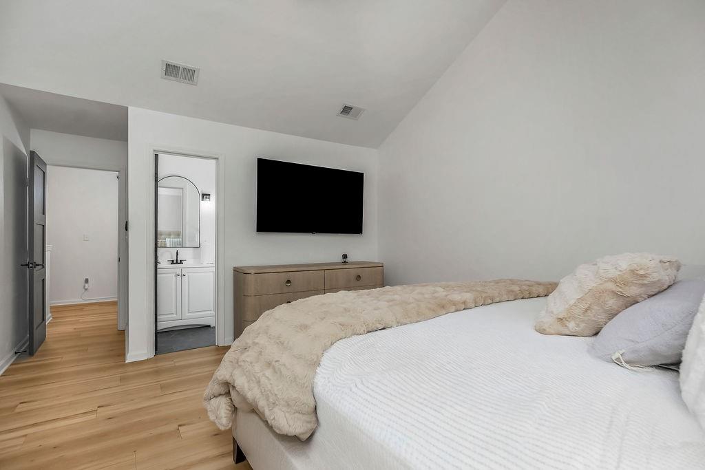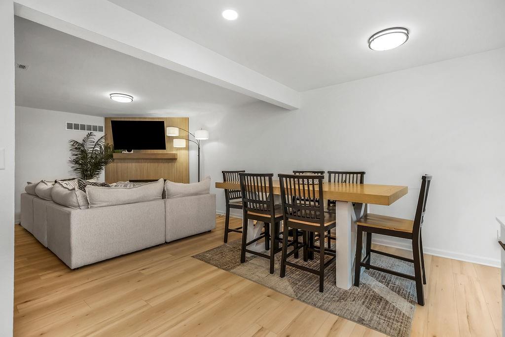 Welcome to this townhome where modern style meets everyday comfort. Step inside to discover a bright, open-concept main level designed for both relaxing and entertaining. The inviting living room features a sleek fireplace with a custom wood accent wall, creating a warm yet contemporary focal point. The neutral color palette and abundant natural light give the space an airy, welcoming feel. The kitchen has been thoughtfully renovated with crisp white cabinetry, stainless steel appliances, modern hardware, and ample counter space perfect for cooking and gathering. It flows seamlessly into the dining area, making it ideal for hosting or everyday living. Upstairs, you’ll find spacious bedrooms with clean lines and modern finishes. The primary suite offers a comfortable retreat with generous closet space. Bathrooms are updated with contemporary fixtures, clean tile work, and a fresh, polished look. Step outside to your private patio, perfect for relaxing or entertaining, backing to a peaceful, tree-lined setting that adds both privacy and charm.