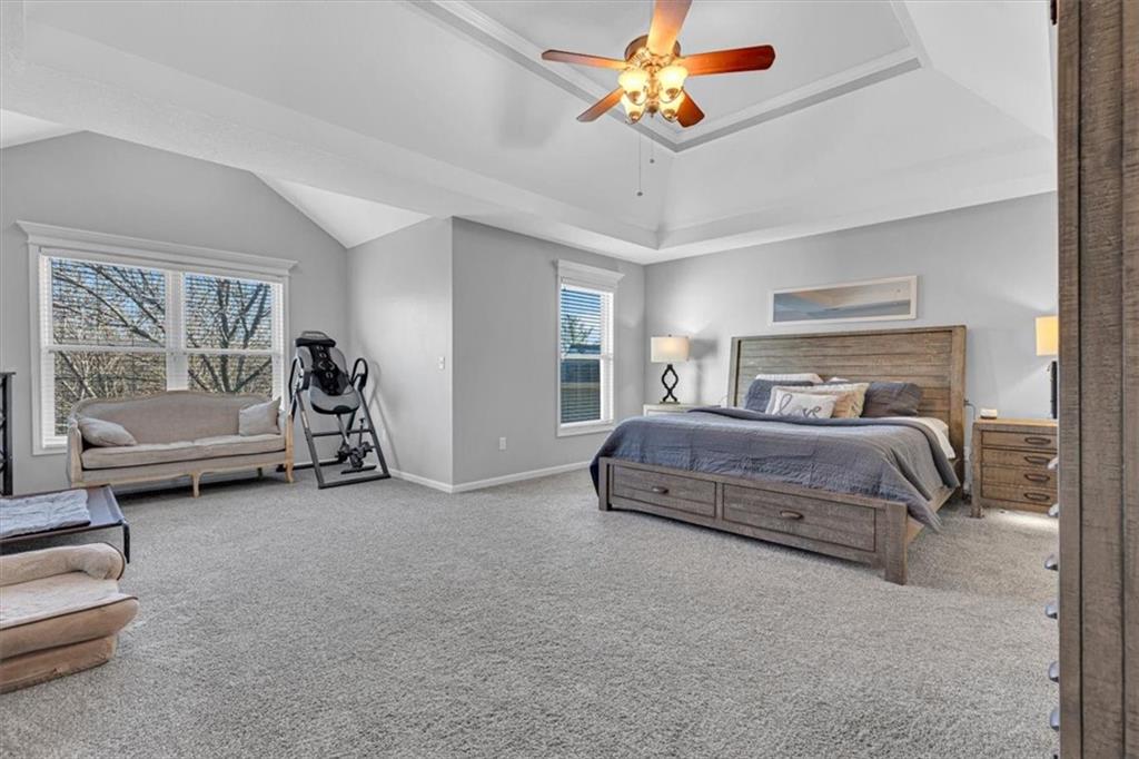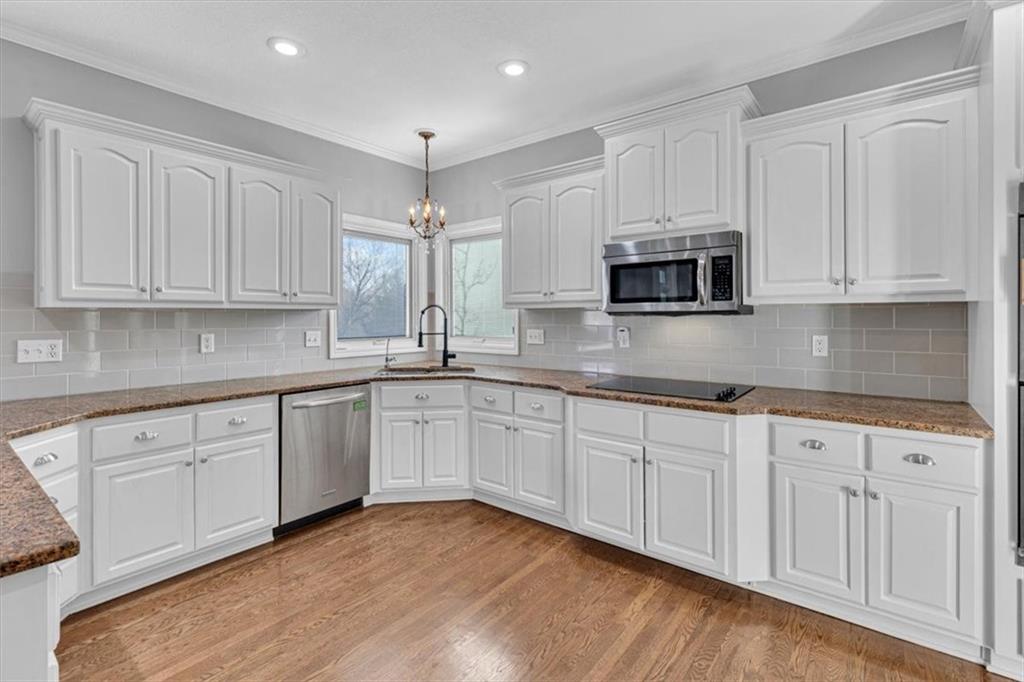 Welcome to 10908 W 144th Street, Overland Park, KS—a luxury home designed for comfort and entertaining or multi-generational living. 2-story entryway, gorgeous kitchen with double ovens & walk-in pantry. The heart of the home flows seamlessly into the great room with beautifully tiled fireplace. This 5-bedroom home features a main-level bedroom & 4 upstairs ensuite bedrooms, one of which is a double bedroom perfect for a playroom, teen lounge area or office, The remodeled primary suite features heated bathroom floors. Designed with entertaining in mind, the finished walk out lower level is truly a showstopper. Enjoy movie nights in your private theater room, host tastings with the climate controlled wine cellar, or prepare food with ease in the second full kitchen—ideal for parties, game days, and gatherings. The basement bathroom even includes a urinal, a convenient and distinctive feature for this entertaining space. Also, a home gym space & plenty of unfinished storage. NEW stair carpet, fresh landscaping, spacious laundry room with mud bench and drop zone off the garage. The extra-large garage with backyard access features epoxied floors. Situated on a corner lot with circle drive this well appointed home offers great curb appeal and a private backyard oasis. Great location in a coveted area zoned to Blue Valley Schools