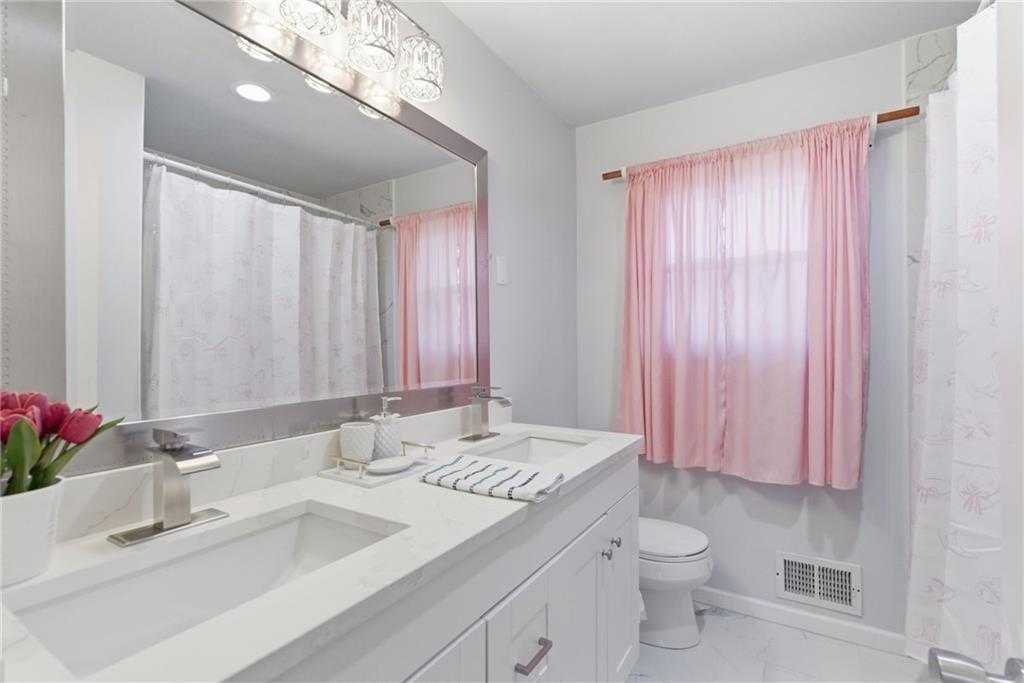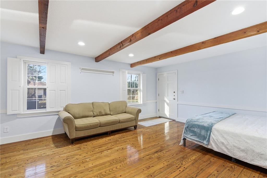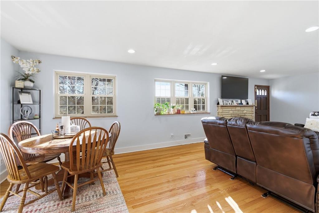 Beautifully updated stone ranch on nearly half an acre with mature trees and exceptional privacy. Features include two remodeled bathrooms, an updated kitchen with new marble countertops and lighting, refinished wood floors, new textured ceilings, and an enclosed master bedroom. Three working fireplaces, cedar closets, and a partially finished basement add charm and extra living space. Five-year- roof, and gutter guards and Three-years old HVAC and water heather. Covered brick porch overlooks the landscaped yard. Well-maintained one-owner home with a high-ceiling 2-car garage. Move-in ready in a great location near highways and schools.