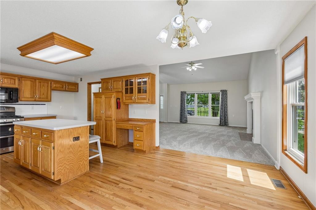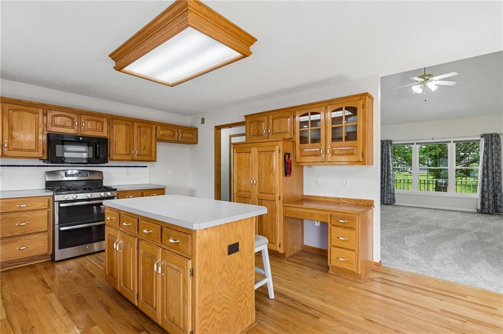 Rare true 5-bedroom home in the highly sought Park Hill School District! This 1.5-story home offers a blend of convenience and peaceful, country-like surroundings. Located near Zona Rosa shopping, scenic trails, and easy highway access, backs to equestrian center & open land where you can enjoy watching horses from your backyard. Thoughtfully designed with ADA accessibility in mind, the main level features raised outlets, a roll-in shower, and main floor laundry. The spacious kitchen includes a double oven, roll-out pantry shelves, and large open and inviting living area. Deck off of dining area offers views of equestrian activities and peaceful country living. Generous sized bedrooms on second level with multiple walk-in closets, and bathroom with a deep soaking tub. The finished walk-out basement offers a 5th bedroom, full bathroom, and living area with floor-to-ceiling windows. Plus, over 400 square feet of unfinished space provides endless possibilities for a workshop, gym, or additional storage. Recent updates include a NEW HVAC, NEW CARPET, FRESHLY PAINTED INTERIOR, newer roof, and new thermal windows. Google Fiber is available!