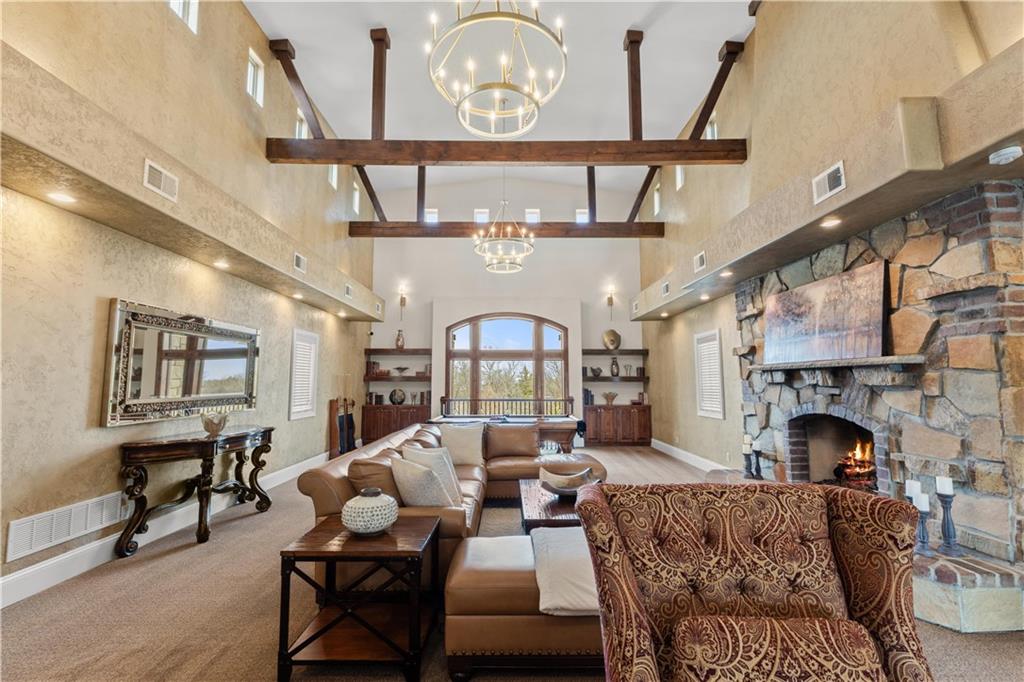 Now is the time to make this amazing opportunity a reality! This 8000+ sqft Mediterranean Masterpiece sits on 26+ acres of secluded land. It is located in Douglas County, Kansas. The pictures pale in comparison to what this luxurious home looks like up close and in person! Priced well under the professionally appraised value, this home is now destined to sell fast. Gated entry to a long winding drive leads you to this beautiful private country estate. It is outside the city yet still close to all the suburban amenities. Truly the best of both worlds. Elegance is a word that best describes the interior of this home with its expansive rooms, gourmet kitchen, multiple fireplaces and huge living areas on every level of this one of a kind, private estate. It also boasts astonishing outdoor living from the decks to a large patio surrounding an amazing custom pool & hot tub which overlooks your very own private lake, complete with its own island. Wildlife abounds on this property, as you can watch the deer, turkey, fox, any many other species cross the secluded 26+ acre estate. There are wide-open meadows that could be fenced for pasture and other areas of surrounding land that can be mowed to enlarge those open meadows. This already outstanding property could be developed into an incredible Equine Estate. This secluded, sophisticated homestead in Edgerton Kansas will satisfy even the hardest to please, so make plans today to tour this one of a kind estate property. This property is within very close proximity of several surrounding cities in Kansas such as Overland Park, Lenexa, Olathe and Lawrence, home of the Jayhawks. The prestigious University in Lawrence, KS is within 25 minutes of this estate property.