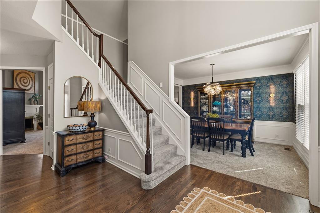 Welcome to this spacious and well-maintained home in the beautiful Steeplechase neighborhood in Leawood! A soaring vaulted entry welcomes you inside and opens to an impressive vaulted family room filled with natural light, creating a warm and inviting space for both everyday living and entertaining. The bright kitchen features refinished hardwood floors, a center island with breakfast bar, updated kitchen countertops, and a convenient built-in desk area. The main level also offers a private den/study along with formal living and dining rooms, providing flexible space for gatherings, entertaining, or working from home. Thoughtful updates throughout the home create a fresh, move-in ready feel, including newer carpet, beautifully refinished hardwood floors, and an updated primary bathroom. Interior paint has been refreshed and all bathrooms feature new toilets, along with the addition of a water softener for everyday comfort and convenience. Additional improvements include a new sump pump with battery backup for peace of mind and a brand-new deck—perfect for relaxing or hosting friends and family. Fresh exterior paint further enhances the home’s curb appeal. With generous living space, meaningful updates, and a fantastic location, this lovingly maintained home offers exceptional value and is ready for its next owners.