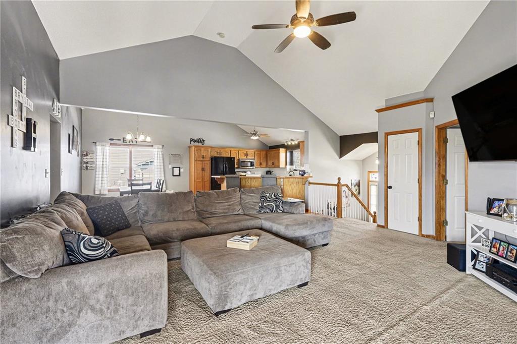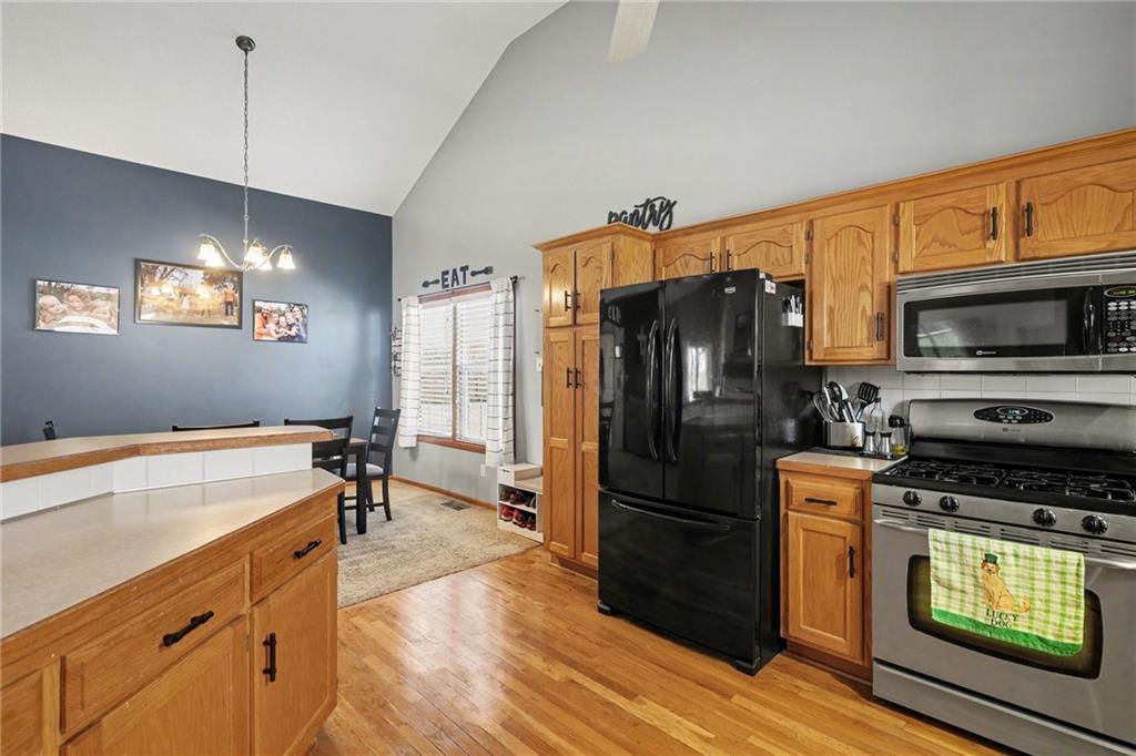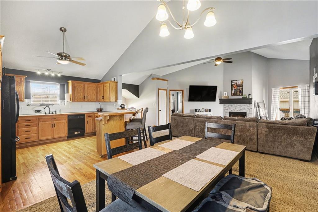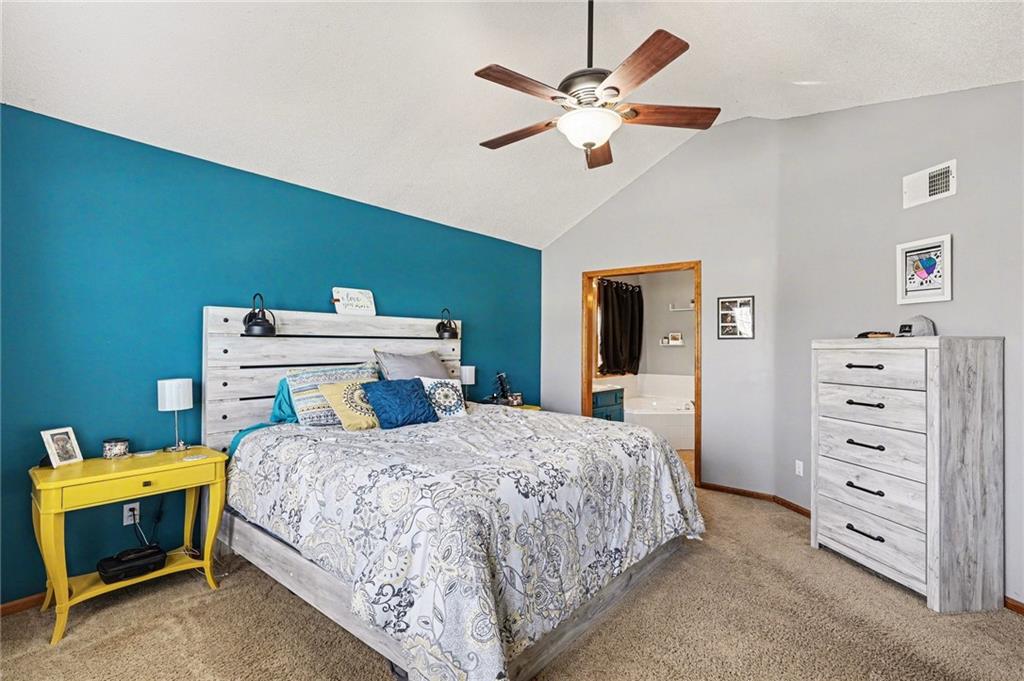 This Ridgewood Hills split-entry checks all the boxes with space where it counts! The main level feels open and airy with vaulted ceilings, a wood-burning fireplace in the living room, and a natural flow into the dining area and kitchen. The covered deck off the main level is a true outdoor living space with a ceiling fan, stairs leading down to a concrete patio and a fully fenced backyard. The main floor primary suite includes a walk-in closet and a private bath with double vanity, soaking tub, and separate shower. Two additional bedrooms and a full bath round out the main level, along with convenient main floor laundry. Downstairs, a fourth bedroom with a full bath adds flexibility for guests or a home office. The remaining basement space offers room to expand, along with plenty of storage or workshop potential. Quick access to I-470 and US-291 puts shopping, dining, and downtown Lee's Summit within easy reach, with Blue Springs schools serving the area.