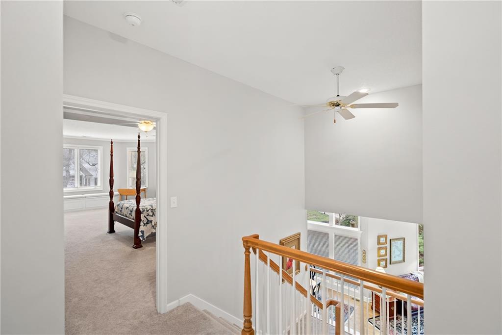 Nestled at the end of a quiet cul-de-sac in the highly sought-after golf community of Falcon Ridge, this impressive two-story home offers space, privacy, and beautiful natural surroundings. Featuring 4 bedrooms, 4.5 bathrooms, and a 3-car garage across approximately 4,500 square feet, the home backs to a serene greenspace with a picturesque dry rock creek. Walls of windows line the back of the home, filling the living areas with natural light and showcasing peaceful, tree-filled views across an expansive lawn. The main level offers both a deck and a screened-in porch—perfect for enjoying the outdoors in comfort. The spacious layout includes an enormous primary suite with an equally expansive walk-in closet, along with a nicely updated primary bath. Hardwood floors have been added to the dining room and study, and the interior has been refreshed with newer paint throughout in recent years. The finished walk-out basement (2016) provides additional living and entertaining space, complete with a built-in bar and access to a patio—ideal for gatherings both inside and out. Additional updates include a lifetime hail-resistant roof (2018) and a completely overhauled irrigation system (2025), offering added value and peace of mind. Located in one of the area’s most desirable communities, this home combines generous living spaces, thoughtful updates, and a tranquil setting just minutes from everything Falcon Ridge has to offer.