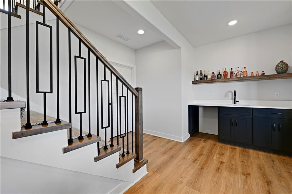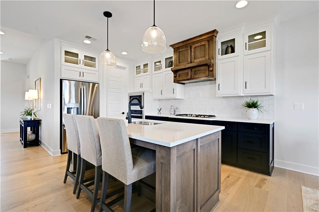 Perfect location, nearly brand new home, finishing touches already done for you! This reverse 1.5 story villa, located in Crestwood Village - a maintenance provided community - features an open concept floor plan. This stunning home has tons of natural light coming through the walls of windows in the great room with fireplace. Warm, wide-plank hardwood floors throughout the great room, dining area, kitchen and mud room. Enjoy cooking in the gorgeous kitchen featuring a center island, custom cabinets, quartz countertops and stainless appliances. You will FALL IN LOVE with the huge, L-shaped, walk-in pantry (including a counter top to host a coffee bar/air fryer) and so much accessible kitchen storage. The private owner's suite includes an ensuite with double vanities, quartz countertops, spacious walk in shower, and a gigantic walk in closet featuring 3-tier/off season storage. Second bedroom/study on the first floor with walk in closet conveniently located adjacent to a full bath. Take the stunning, U-shaped staircase down to the finished, walkout basement, LVP floor with wet bar where you can entertain and enjoy watching the game. Two more bedrooms and full bath are perfect for guests! Abundant storage in the unfinished area of the basement. Nice finishing touch - painted floors in the unfinished storage area. Sellers have installed high-end window treatments that will remain with the home, along with fridge, washer and dryer. Come by to see this beautiful community in a fabulous location. Close to shopping, restaurants, grocery stores, entertainment, medical facilities and walking trail. Enjoy maintenance provided living for $267/month - included is lawn maintenance, snow removal, exterior paint and more! Vibrant community. Cascading views. Exceptional, well-manicured landscaping. Fences allowed at Crestwood Village!