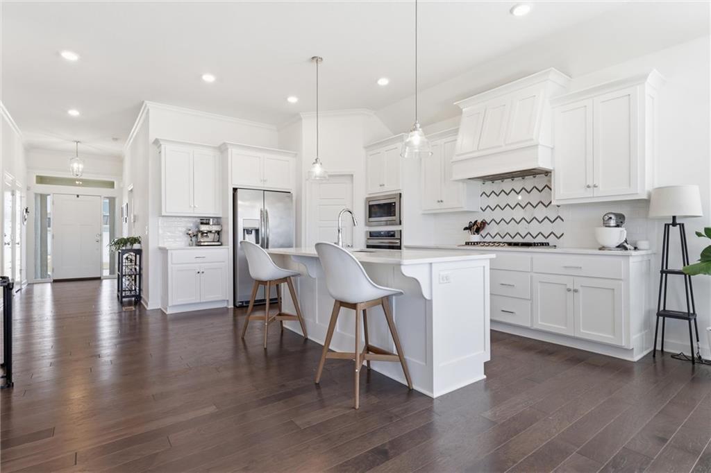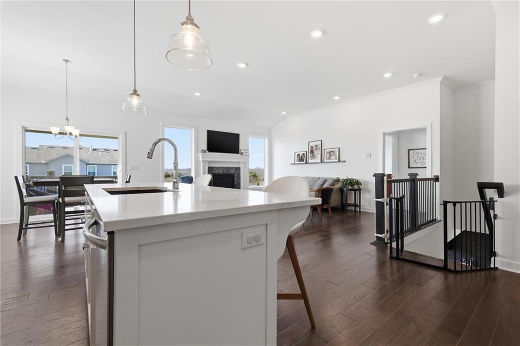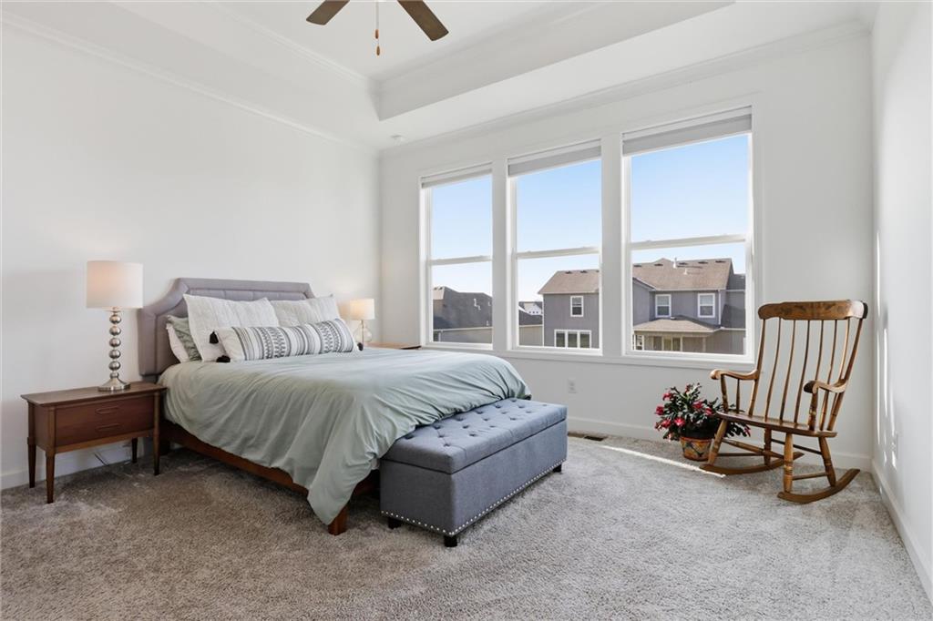 Better than new, this meticulously maintained reverse 1.5-story home by Summit Homes sits on a quiet cul-de-sac and an incredible walk-out lot in the coveted Southpointe neighborhood in Overland Park. Offering over 2,600 square feet of like-new living space, this home features 4 bedrooms and 3 full bathrooms with thoughtful upgrades throughout. The main level showcases an open-concept layout filled with natural light, a bright white kitchen with updated appliances and fixtures, and a spacious living area that flows seamlessly to the covered deck — perfect for relaxing or entertaining. The large primary suite offers a beautifully appointed en suite bathroom and an oversized walk-in closet. The finished walk-out lower level is built for entertaining with an impressive wet bar, spacious living area, and direct access to a covered patio and fully fenced backyard. You’ll also find an unbelievable amount of basement storage space — truly something you have to see in person to appreciate. Generous bedroom sizes, large closets, and beautifully tiled bathrooms add to the home's appeal. Located in the highly sought-after Spring Hill School District with convenient access to major highways, this home also enjoys the fantastic amenities of the Southpointe community, including a neighborhood pool, clubhouse, and playground.