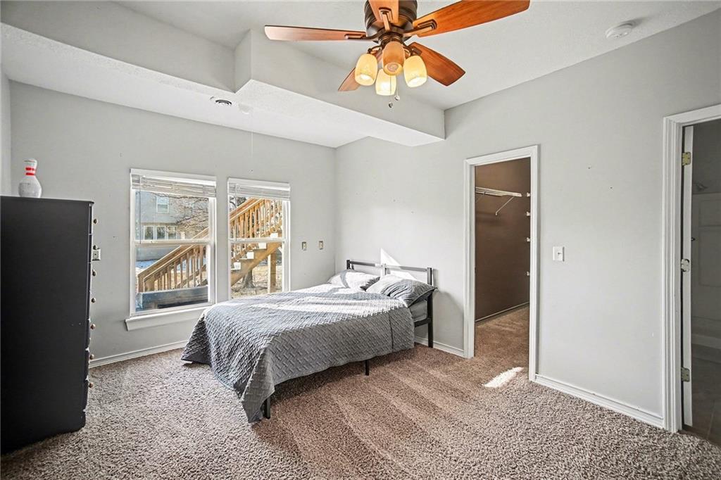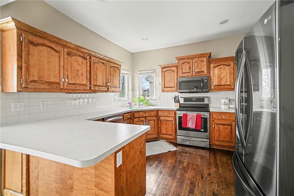 You can have it all in this beautiful family home located in an established neighborhood with exceptional amenities. This charming 4-bedroom, 3-bath residence features a spacious living room with a cozy fireplace and vaulted ceilings, creating an inviting atmosphere. A split stairway leads to the well-appointed kitchen, which boasts stainless steel appliances, ample cabinetry, and a dining area with direct access to the walkout deck—perfect for indoor-outdoor entertaining. The upper level offers three generously sized bedrooms and a convenient laundry area. The primary suite includes a private en-suite bathroom and a walk-in closet. The lower level provides additional living space with a recreation room and walkout patio, along with a true fourth bedroom featuring a walk-in closet and a separate full bath—ideal for guests or a home office. The thoughtful layout and natural flow throughout the home offer multiple options for entertaining. This pet-free and smoke-free home has been meticulously maintained and enhanced by beautiful landscaping. Located in the desirable Stonebridge Meadows subdivision, residents enjoy access to four neighborhood swimming pools, a fitness center, pickleball courts, clubhouse, walking trails, and parks. Conveniently situated near top-rated schools, shopping, and interstate access.