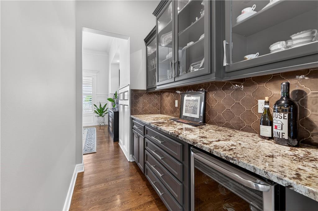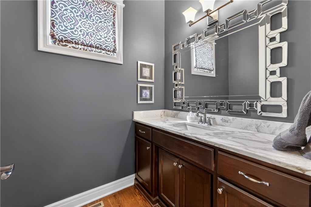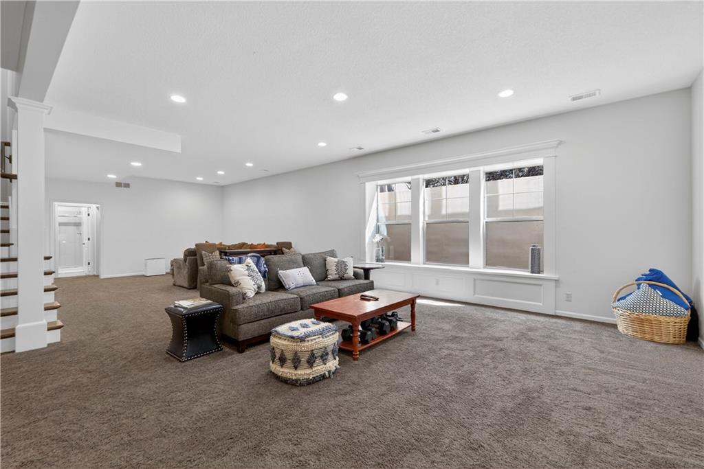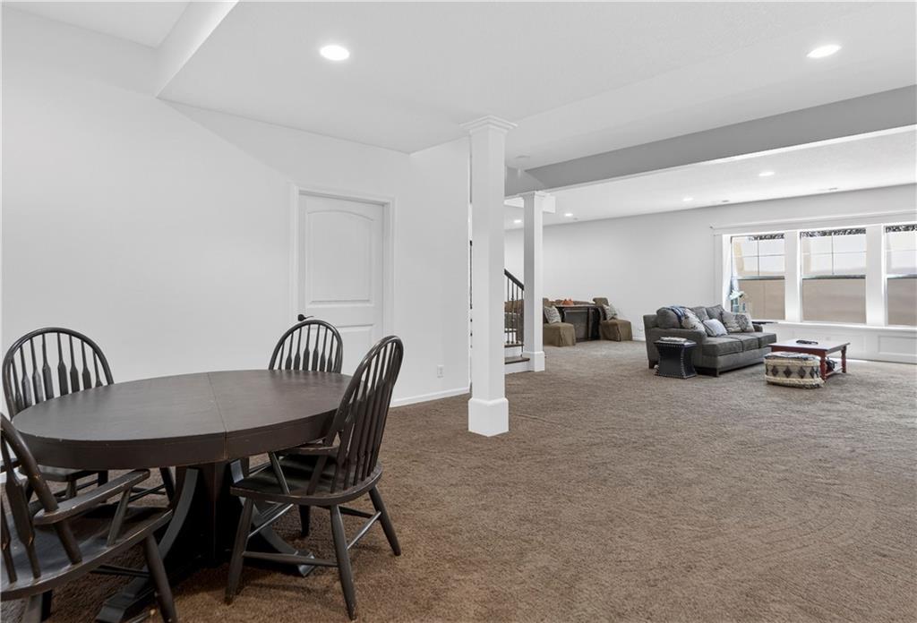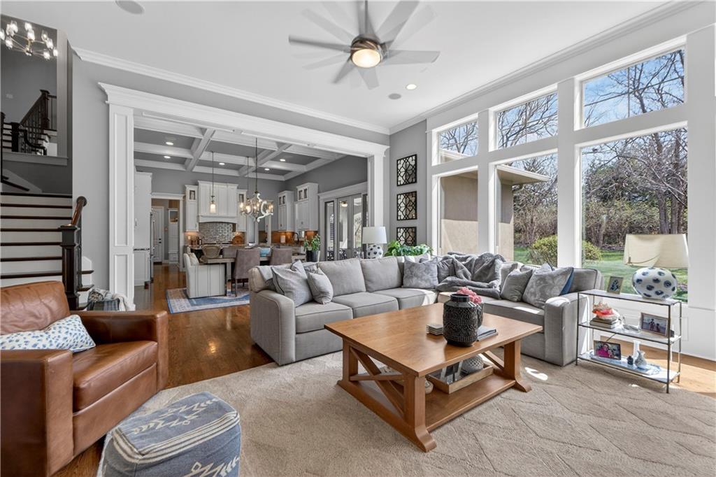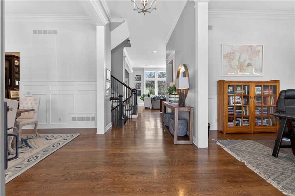 This one owner custom built home sits on an oversized private treed lot and boasts upgraded mill work and moldings, fresh new paint throughout and true hardwood floors on the entire first floor and stairs. The chef's dream kitchen has upgraded granite countertops, huge center island, double ovens, newly painted cabinets and opens up to family room with vaulted ceilings, beautiful mill work and stunning fireplace. Walk out to the covered lanai perfect for entertaining, lounging and grilling! Three car side entry garage with flat driveway is perfect for outdoor activities. The finished lower level has a fifth bedroom, fourth full bath, with rec and family room areas. Must see this home with charming front porch, 2 main floor offices and all upgraded finishes!