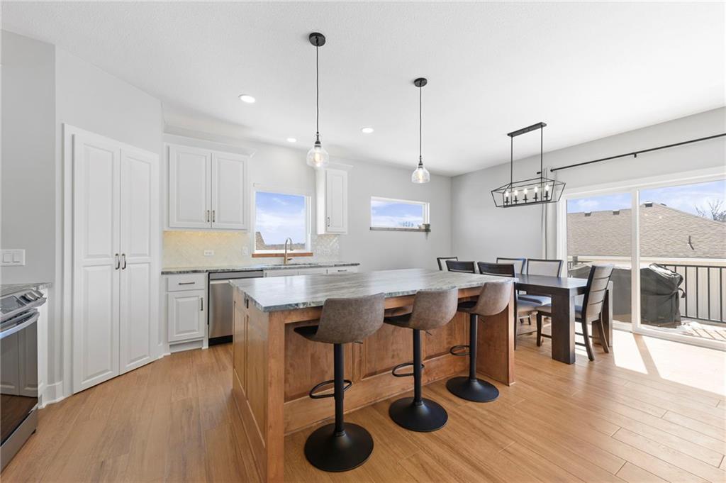 Looking for something different than the typical subdivision? This home is located in a small neighborhood of only 30 homes, providing a quieter, more private place to call home in the Northland. This home is the builder’s personal residence built in 2024, offering quality construction and thoughtful design. It features 4 bedrooms, 3 full baths, and a 3-car garage. The lot provides comfortable outdoor space while remaining easy to maintain. All kitchen appliances are included in this all-electric home. The kitchen is designed to impress with a blend of painted and stained cabinets, quartz and granite countertops, and a large island that is ideal for baking, entertaining, and everyday cooking. The primary suite is a well-designed space organized for comfort and easy flow. The bedroom has generous space, giving you plenty of room to express your personal style. The primary bath includes a double vanity, a large walk-in shower, and a private water closet with a pocket door. The suite is completed by a masterfully designed walk-in closet that connects conveniently to the laundry room. The daylight lower level has two bedrooms, a full bathroom, and a large recreation room that can be used for entertaining, hobbies, or additional living space. A nicely sized bar comes with a mini refrigerator that is perfect for beverages and snacks when entertaining. The home was thoughtfully designed with plenty of storage throughout. The old teacher in me gives this home an A+.