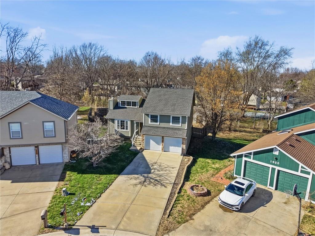 Tucked away at the end of a quiet cul-de-sac, this inviting 4 bedroom, 2.5 bath home offers the perfect mix of comfort, entertaining space and location. Inside, the living room welcomes you with vaulted ceilings and a striking stone fireplace. The updated kitchen features white cabinetry, granite countertops and a gas stove. Upstairs you’ll find the primary suite with walk-in closet and updated primary bathroom along with two additional bedrooms and a full bath. The lower-level fourth bedroom offers great flexibility and works perfectly as a home office or workout space, with a convenient walkout to the backyard. The finished basement is made for entertaining, featuring a recreation area with a full bar. Step outside to a fully fenced backyard with an above-ground pool and surrounding deck, perfect for summer gatherings. Easy access to everything Lee’s Summit offers makes this home one you won’t want to miss!
