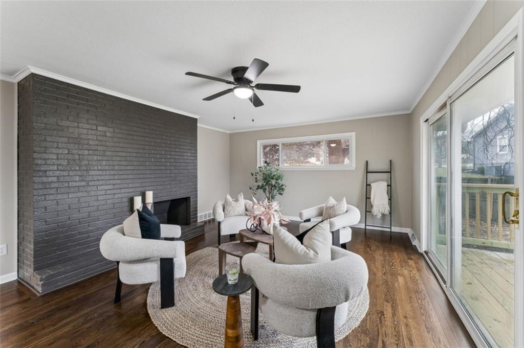 Beautifully remodeled 5 bedroom, 2.5 bath home offering over 3,500 finished square feet of living space. The main level features refinished hardwood floors, a spacious living area with a striking brick fireplace, and an open layout that flows into the fully updated kitchen with quartz countertops, custom cabinetry, stainless steel appliances, and subway tile backsplash. Sliding doors lead to a deck overlooking the backyard, perfect for relaxing or entertaining. The finished lower level provides over 1,400 additional square feet of flexible living space ideal for a family room, office, or guest area. Move-in ready with modern updates throughout and conveniently located near shopping, dining, and major highways.