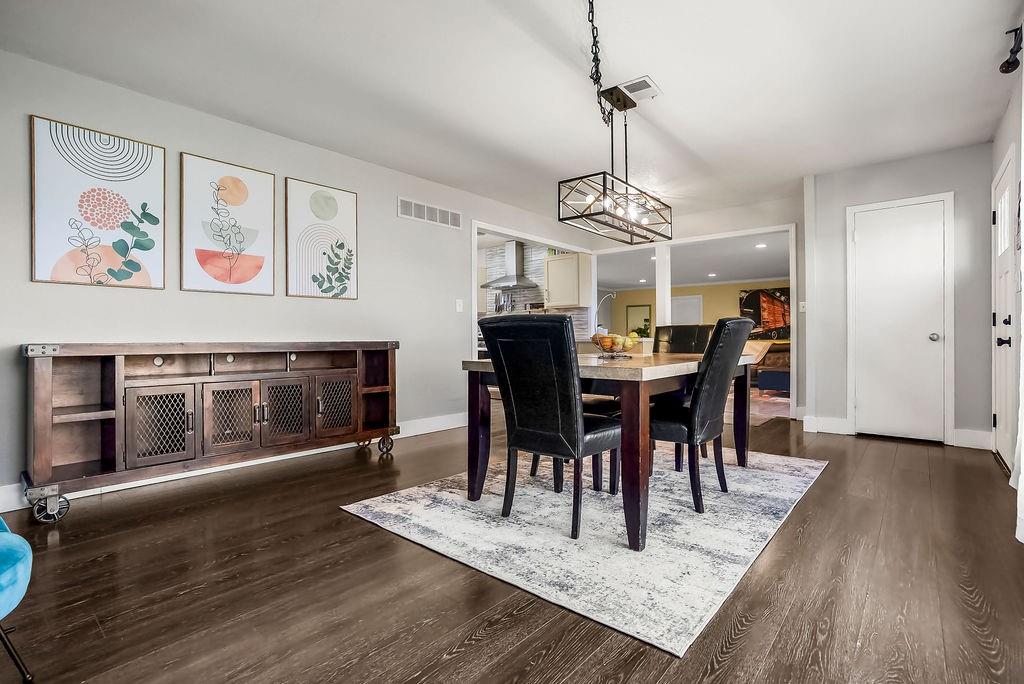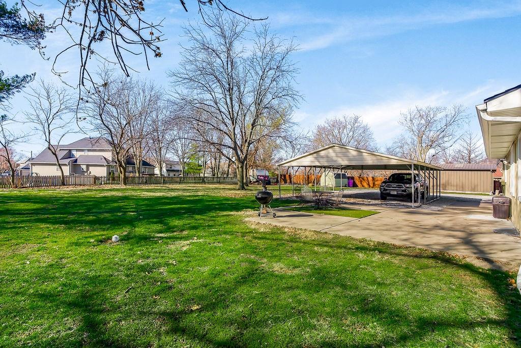 Welcome to your private retreat just minutes from city conveniences! Nestled on over an acre, this charming home offers spacious one-level living with thoughtful updates and room to grow. Major improvements have already been taken care of—the roof, exterior siding, and entry doors are all just a year old! Step inside to a warm, inviting family room with durable luxury vinyl plank flooring and easy backyard access—perfect for entertaining or relaxing outdoors. The bright white kitchen is a dream for any home chef, featuring abundant cabinet space, a gas range with hood, a massive industrial sink, built-ins, and a convenient pantry. Nearby, the large formal dining room makes hosting gatherings effortless. The primary suite offers comfort and privacy with two closets and a private bath with tile and a walk-in shower. On the opposite side of the home, you’ll find three additional bedrooms with generous closets, plus an updated hall bath with a shower/tub combo. Convenient laundry near the bedrooms keeps daily routines simple. This bedroom with brand new carpet! Need extra storage or workspace? The large walk-up basement offers incredible potential a workshop or future expansion. Outside, enjoy a huge patio, long driveway, and multi-car carport with plenty of room for vehicles and outdoor equipment. A storage shed and partial fencing add even more functionality. Peaceful acreage living with easy access to nearby amenities—this property truly offers the best of both worlds.