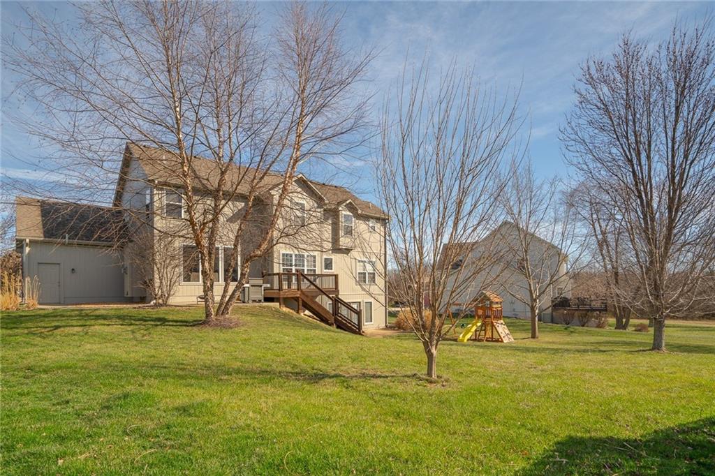 Homes like this one don't come up very often! Located on quiet double cul-de-sac streets with no through traffic, this updated 2-story Stonegate home has the peaceful setting you're looking for. Tucked away while still being incredibly convenient to everyday life, you’re just minutes from Raymore's schools, shopping, restaurants, and easy routes toward Kansas City when you need them. Inside, the home has been exceptionally well cared for and thoughtfully updated and maintained. Plus, with no pets in the home you won't need to worry about allergies or pet damage. The layout offers plenty of room to spread out with the main floor featuring the cozy living room, incredibly spacious kitchen, and 2 flex rooms that can be used as dining, office, family room, or play room. Upstairs, spend time with loved ones in the 4 roomy bedrooms, all with closet systems. Plus, laundry on this level gives ease in daily living. The unfinished walkout basement adds an entire 1,000 sqft of potential--filled with light and stubbed for a bathroom, the possibilities are endless. Your huge 3-car garage stays warm with its insulation and is ready to go for an EV with a 240v outlet. Major updates like the roof, gutters, exterior paint, and dual HVAC systems were all completed in 2020, giving buyers confidence that many of the big-ticket items have already been taken care of. Get ready to fall in love and move right in to one of Stonegate's best homes!