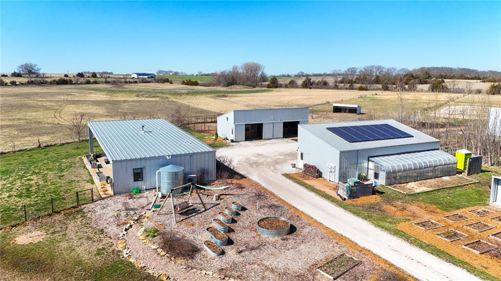 Enjoy self-sufficiency, low energy costs, family-friendly spaces & equestrian & livestock facilities. 17 ac nestled in the beautiful Vinland Valley area. Narrow Trail Farm is perfect for those looking for space yet still close to all the amenities of the city. This 2016 farm has impressive passive solar design & self-sustaining infrastructure w all the amenities of a modern farm. Diverse orchard of producing apple, pear, peach, plum & nectarine trees & blackberries, raspberries, & blueberries. Thousands of flower bulbs & peonies are planted stunning flowers throughout the growing season. Seller owned Solar panels help to power the farm and provide low energy costs. The contemporary home is thoughtfully designed w soaring ceilings & design that utilizes every inch. The 1297 sq ft home provides 3 bed & 2 bath. Walk into the open kitchen-dining-family room w huge windows & sliding doors opening out to the wrap around patio. Everyone will enjoy the wood burning stove in the great room. The primary suite offers a walk-in closet, that is also a safe room, and ensuite bath. Enjoy the outdoor space including the huge covered patio perfect for enjoying evening meals. There is a large storm shelter just off the patio for that additional safety during storms. Outbuilding #1 (48x24) detached garage w 3rd bay converted to the perfect family room. Outbuilding #2 (48x24) horse barn w 3 stalls opening out to the dry lot paddocks. Outbuildings #3 (36x24) equipment and hay storage. There is a large pasture as well as additional open pasture for hay or can be fenced for your horses or livestock. And everyone will enjoy the 75x165 professionally built fenced outdoor arena. Need more space? Check out the adjacent 12 acres with beautiful pond that is also available (MLS#2555700) Want to have family or friends as neighbors? Check out the charming 3 bedroom, 2 bathroom home on the adjacent 5 acres (MLS#9606640)