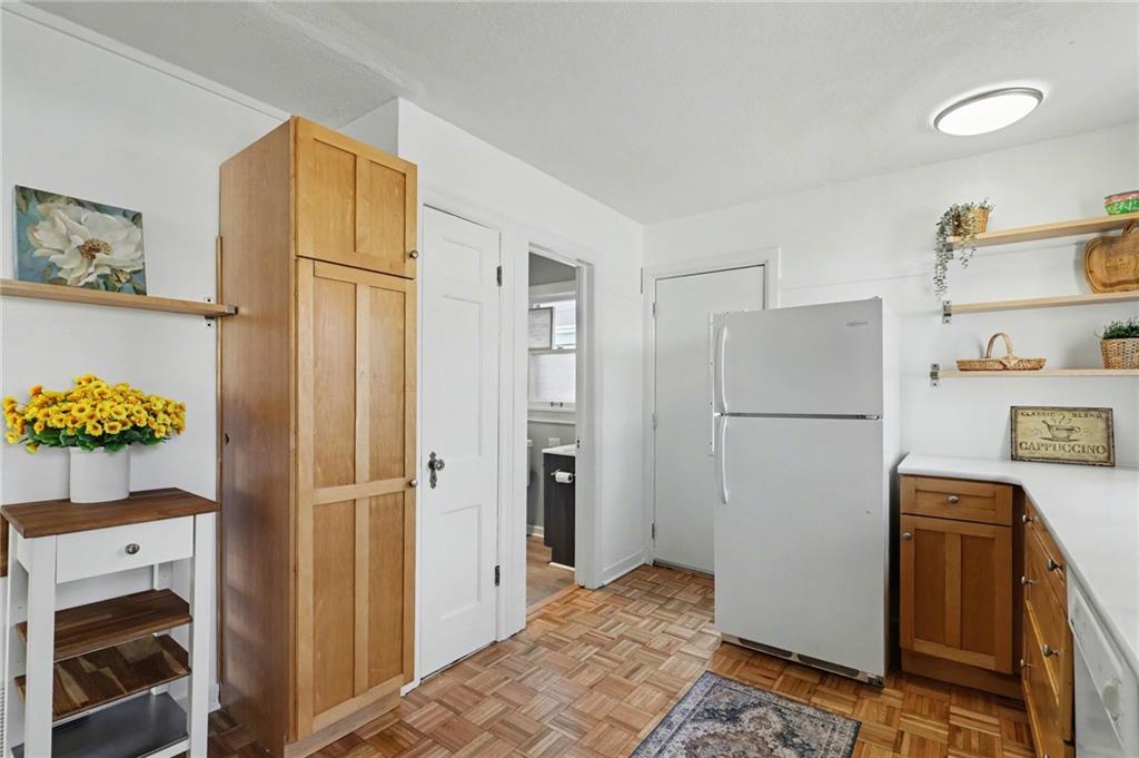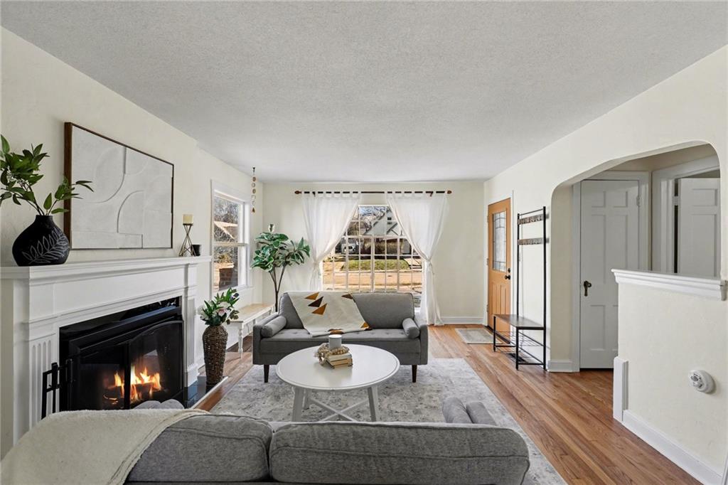 7234 Baltimore St • 1.5-Story Tudor/Traditional • Solar panels • 3BR/2BA • 1,659 SF • Classic 1937 charm meets clean updates in this brick-and-trim Tudor with a covered front porch and dormer details. Inside, the living room features hardwood floors, a large picture window for natural light, and a masonry fireplace. The kitchen offers ample cabinetry, white counters, tile backsplash, dishwasher, and a gas range, with room for a breakfast nook. Two refreshed bathrooms showcase modern fixtures and standout tilework. Main-floor bedroom plus additional bedrooms upstairs; huge walk in closet! Full stone/rock basement provides storage and utility space. Brand New HVAC. Outdoor living includes a patio/deck, and parking is served by a shared driveway with carport-style covered parking. Solar panels are already installed to help offset electric costs. Convenient access to Ward Parkway and W Gregory Blvd.
