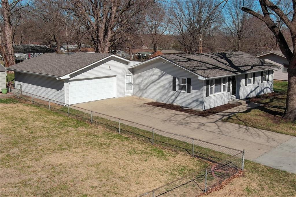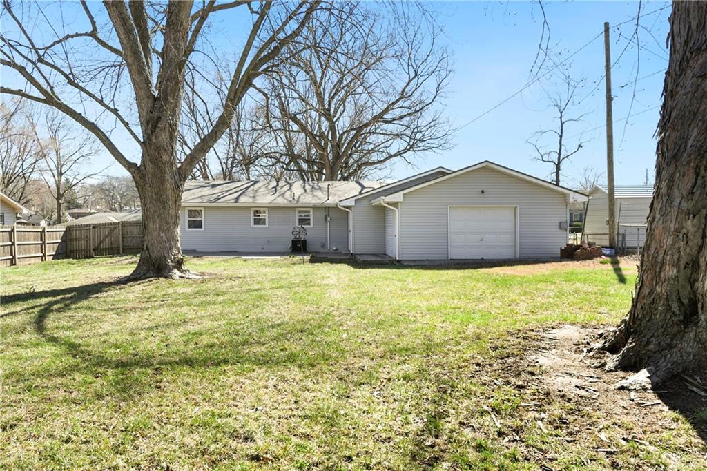 Welcome to this well maintained 3 bedroom, 1.5 bath ranch home that offers comfortable living on a spacious 1/3 acre lot with mature trees. The property features a 2 car garage with a pass through garage door to the fully fenced backyard, providing plenty of space for outdoor activities, pets, or relaxing under the shade of established trees. The main floor features 3 bedrooms and a full bathroom with a practical ranch style layout. The current carpet is installed over hardwood floors, offering the potential to restore the natural wood flooring and add instant character and value to the home. The basement expands the home's functionality with a half bath, laundry area, and a potential fourth non-conforming bedroom that could serve well as a guest room, office, or hobby space. Major updates have already been completed, including a new roof and a new HVAC system. The large yard, mature landscaping, convenient location and solid ranch style layout make this property a great opportunity for buyers looking to personalize a home while enjoying important structural updates already in place. Located just off 20th Street, this home offers convenient access to Fort Leavenworth and is only minutes from downtown Leavenworth, making commuting, shopping, dining, and local amenities easily accessible.