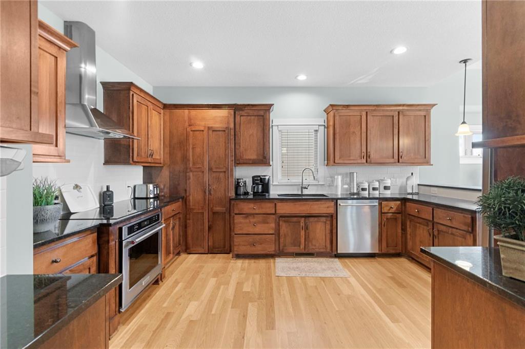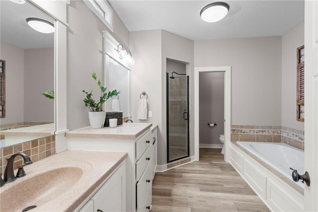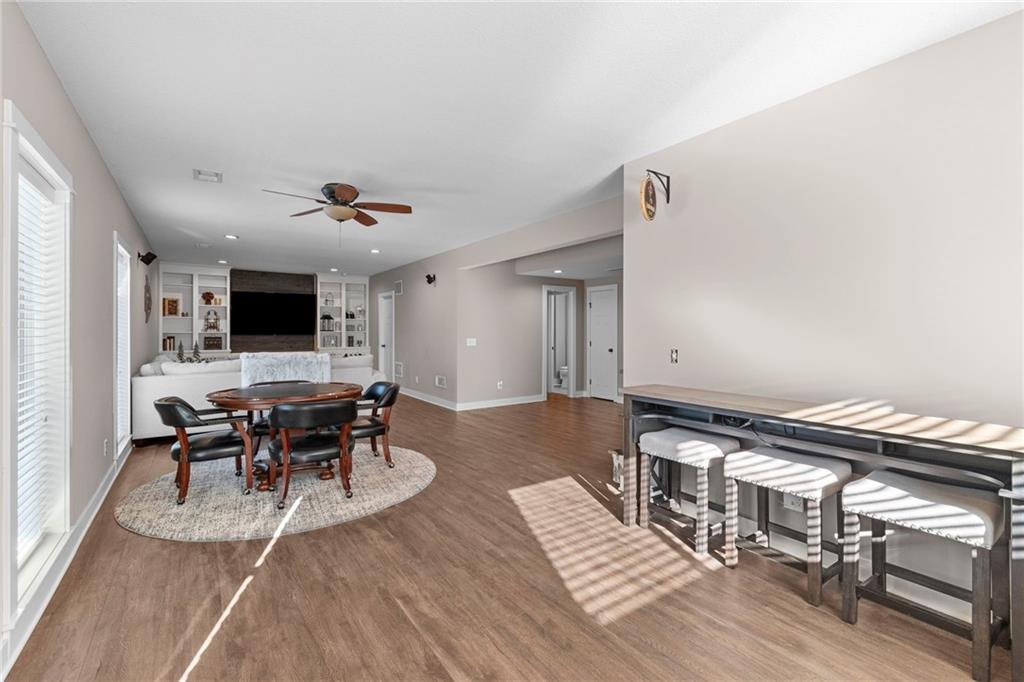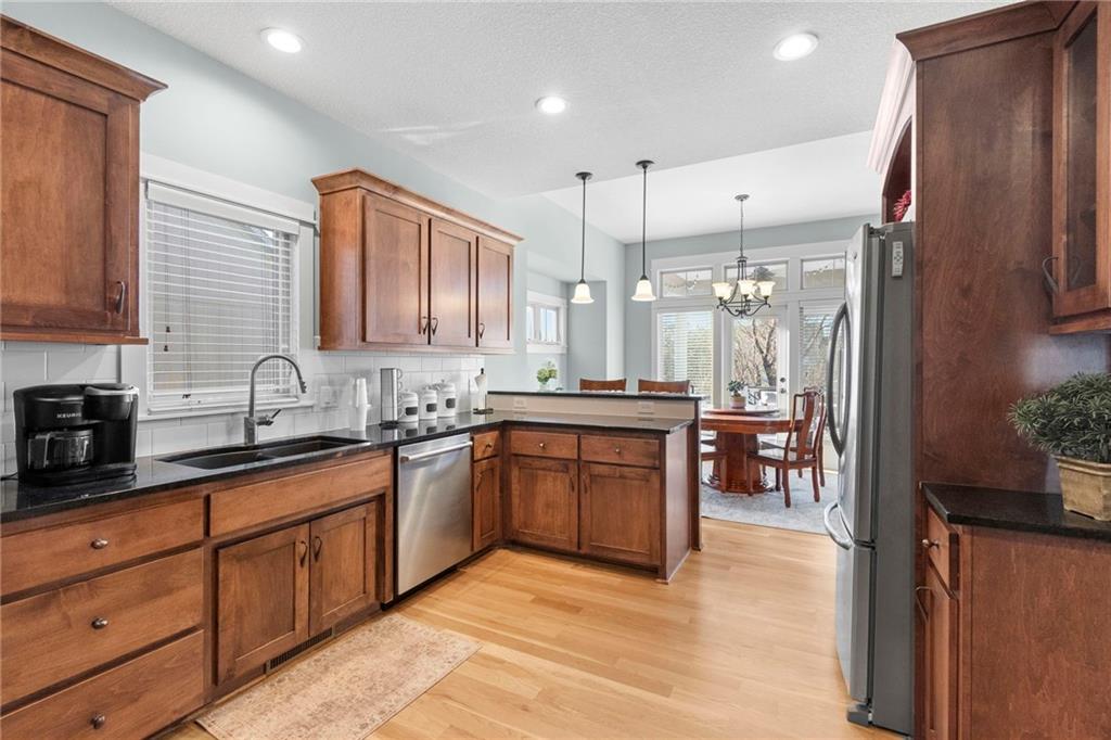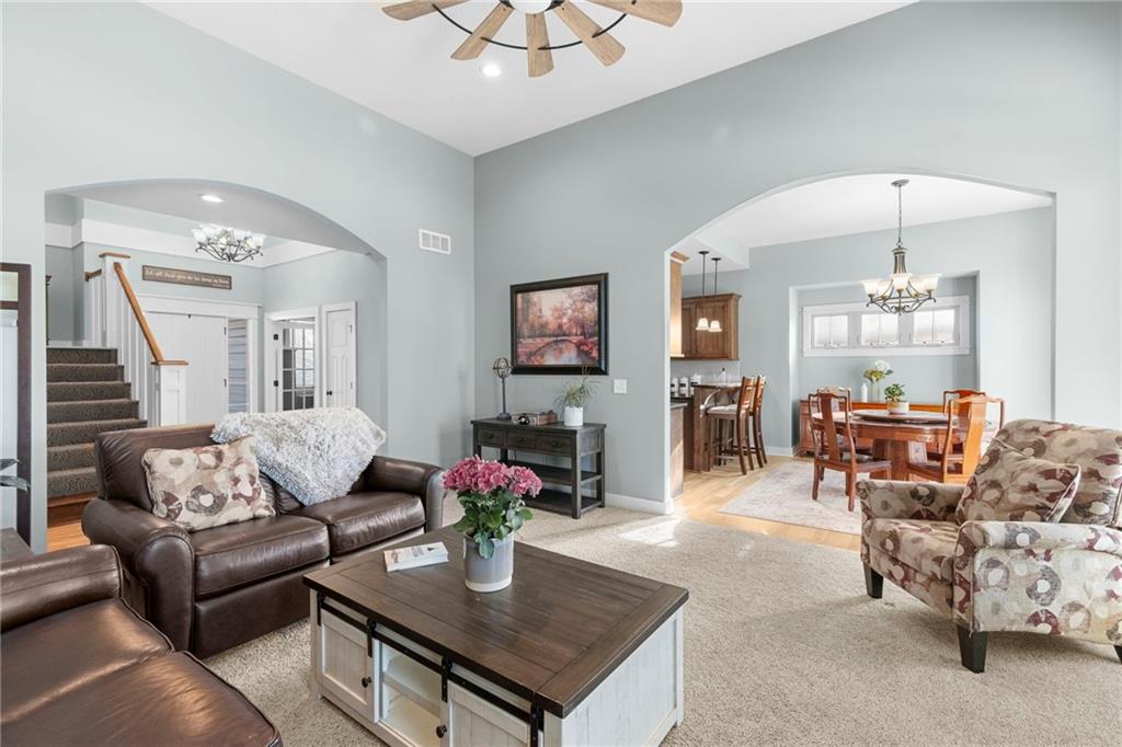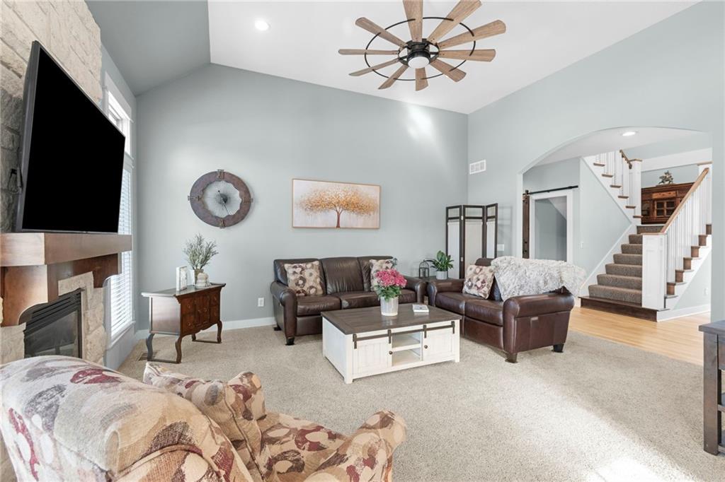 Welcome home to one of the most thoughtfully updated properties in Benson Place Woodchase, located in Shoal Creek Elementary district. Built by the award winning Homes by Chris LLC, this stunning 1.5-story home offers 5 bedrooms, 4.5 baths, and over 3,600 sq ft of finished living space. The main-floor primary suite features a spa-like bath with dual vanities, separate shower, walk in closet and jetted tub, creating a true retreat. The open great room impresses with soaring vaulted ceilings, a cozy fireplace, and newly refinished hardwood floors that flow throughout the main level. The kitchen is a chef's dream with it's pantry, stainless steel appliances and ample cabinet storage. The sellers have invested heavily so you don't have to! Enjoy a brand-new roof (2025), new high-efficiency HVAC (2023), two new water heaters, fresh interior paint, new carpet, stunning new kitchen appliances, and new plank flooring in the primary bath. The exterior shines with a gorgeous composite deck, fence, and enhanced landscaping. The fully finished walk-out basement offers an incredible recreation room and wet bar and unfinished space for a great workout room or for storage! The 3-car garage is spacious. Community perks include two pools, trails, and playground. All of this in the Liberty School District with easy highway access. This one checks every box!
