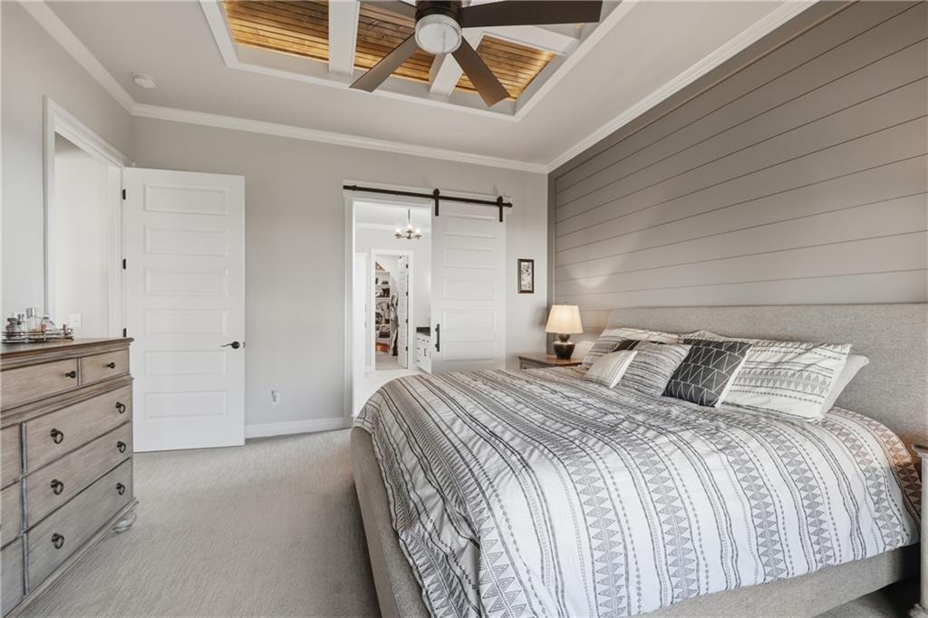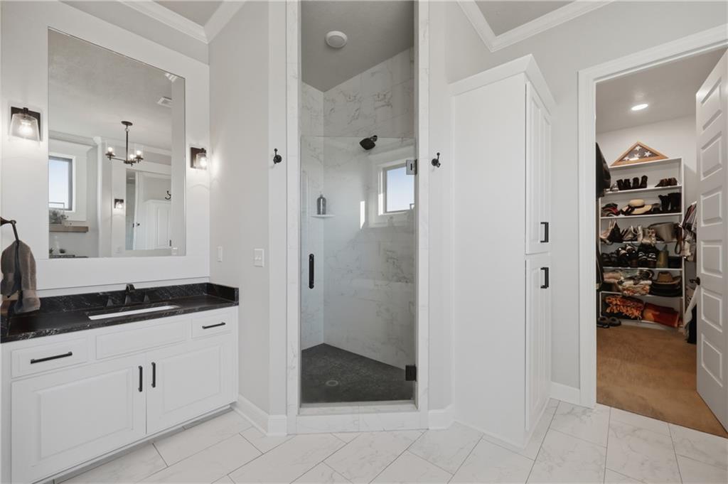 Beautiful custom-built, one-owner reverse 1.5 story offering quality craftsmanship and thoughtful upgrades throughout. This stunning home features soaring ceilings with exposed beams, creating a warm and inviting open floor plan. The spacious kitchen is equipped with high-end KitchenAid appliances, ample cabinetry, and flows seamlessly to an enclosed deck just off the kitchen—perfect for relaxing or entertaining. Enjoy the comfort of heated floors, custom blinds, tankless hot water, and dual-zoned HVAC for year-round efficiency. The main level offers generous living space while the finished walkout basement expands the home with additional living areas, bar, and plenty of room for guests or entertaining. This home includes 3 bedrooms and 4 bathrooms, providing space and privacy for everyone. You will appreciate the oversized 3-car garage featuring durable epoxy floors. Enjoy a lush, well maintained lawn made easy with a full ground sprinkler system. A rare opportunity to own a beautifully maintained custom home with premium upgrades and exceptional attention to detail.