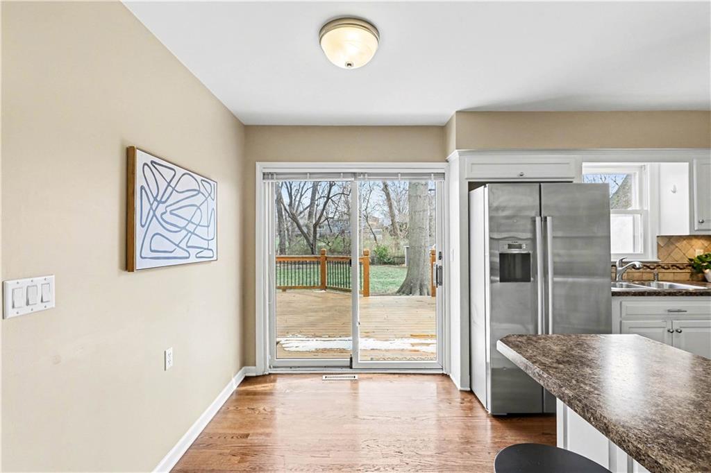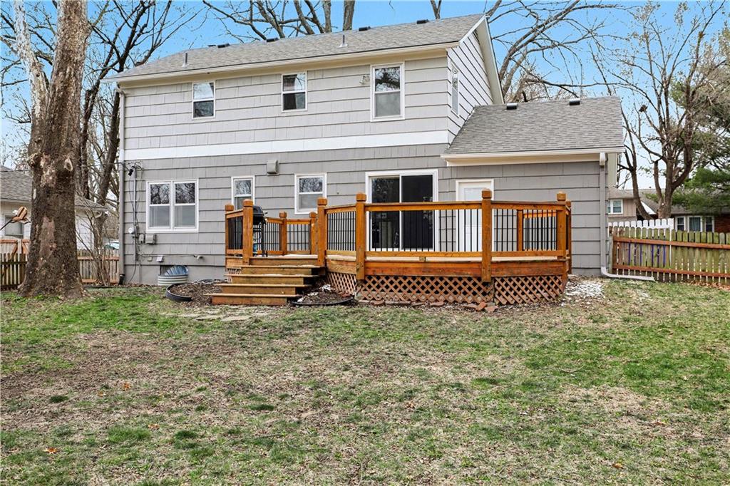 WELCOME HOME to this beautifully maintained 3-bedroom, 2.1-bath two-story nestled in the highly sought-after Tomahawk Ridge subdivision! From the moment you step inside, you’ll be captivated by the warm, inviting atmosphere, featuring rich wood floors throughout the main level and a spacious living room anchored by a cozy fireplace—perfect for relaxing or entertaining. The thoughtfully designed layout flows seamlessly into a charming dining area, ideal for hosting gatherings, while the bright, eat-in kitchen offers abundant storage, counter seating, and sleek stainless steel appliances. Step outside to your expansive deck and discover a private backyard oasis—complete with mature trees, shed, and plenty of space to unwind, entertain, and enjoy the outdoors. This amazing yard has endless potential - build a vegetable garden, put in a pool, host soccer practice!!! Upstairs, the primary suite provides its own ensuite bath and plenty of closet space. Two additional bedrooms and a full hall bath up. The finished lower level adds even more living space, ready to be customized to fit your lifestyle, along with ample storage. This home truly stands out with major updates already completed, including a new roof, new water heater, radon system, newer exterior paint, updated electrical service, and new stove and dishwasher—giving you peace of mind from day one. As an added bonus, the kitchen refrigerator, washer, dryer, and even a John Deere tractor stay with the home! Main floor and second level have all hardwoods!! Ideally located just minutes from Downtown Overland Park, you’ll enjoy easy access to local shops, restaurants, the Farmers Market, parks, and major highways—making this home the perfect blend of comfort, convenience, and charm.