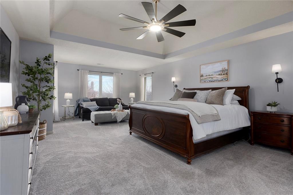 Welcome to this beautifully updated home in the sought-after Prairie Highlands golf course community! Located at 26032 W 150th St in Olathe, this move-in ready home features fresh interior paint, brand new carpet upstairs with high traffic on stairs, updated light fixtures, and all new faucets and shower fixtures throughout. Major updates include a newer roof and newer AC for added peace of mind. The spacious layout of over 4200sqft includes a cozy hearth room and finished basement, both wired for surround sound—perfect for entertaining or movie nights. Step outside to enjoy the freshly stained deck, ideal for relaxing or hosting guests. The large primary suite offers a private retreat with new tile in the bathroom, a jacuzzi tub, new shower doors, and a huge walk-in closet. Located in the desirable Prairie Highlands golf course community, residents enjoy access to the neighborhood golf course and clubhouse restaurant—perfect for grabbing a meal or meeting friends close to home. Move-in ready with stylish updates throughout—this one is a must see!