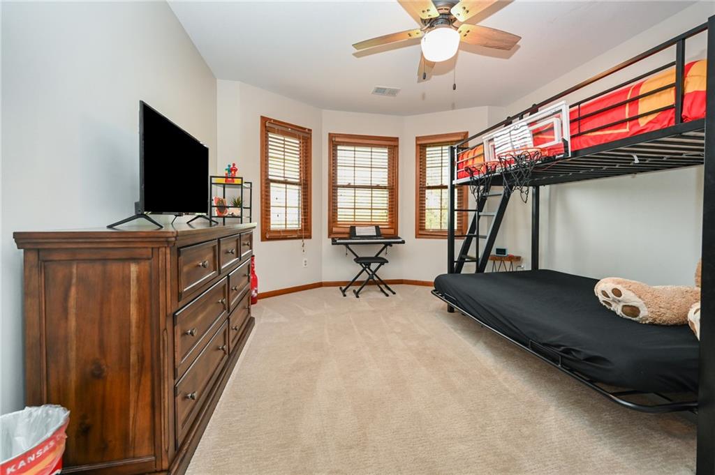 Welcome to Oak Country Estates — one of De Soto's most established communities, tucked just off Kill Creek Road with large lots, abundant green space, and a country feel that is genuinely rare this close to K-10. No HOA. No restrictions. This updated 2-story home sits on 1.15 acres and backs directly to the Oak Country Golf Course, offering open views and privacy you will not find in a typical subdivision. Wildlife is part of everyday life here — deer in the yard is a common sight. Golf membership and guest play are available through the course separately. Inside, 3,740 square feet of finished living space gives everyone room to spread out. The layout features multiple living areas, a finished lower-level rec room ideal for entertaining or family use, and bedroom-level laundry that keeps daily life running smoothly. The spacious primary suite is a genuine retreat. FIVE BEDROOMS Four conforming and one non-conforming bedrooms, three baths, and a 2-car attached garage round out the package. Built in 1995 with thoughtful updates throughout. * Hot Tub Stays * Public water, septic. Families will appreciate the De Soto Unified School District — ranked 11th out of 266 Kansas districts. De Soto High School holds a 10/10 GreatSchools rating, ranks 9th in the state, and carries a 97% graduation rate. Feeding schools include Starside Elementary and Lexington Trails Middle School. K-10 is minutes away, connecting you to Kansas City and Lawrence without sacrificing the space, quiet, and setting that make Oak Country Estates worth coming home to
