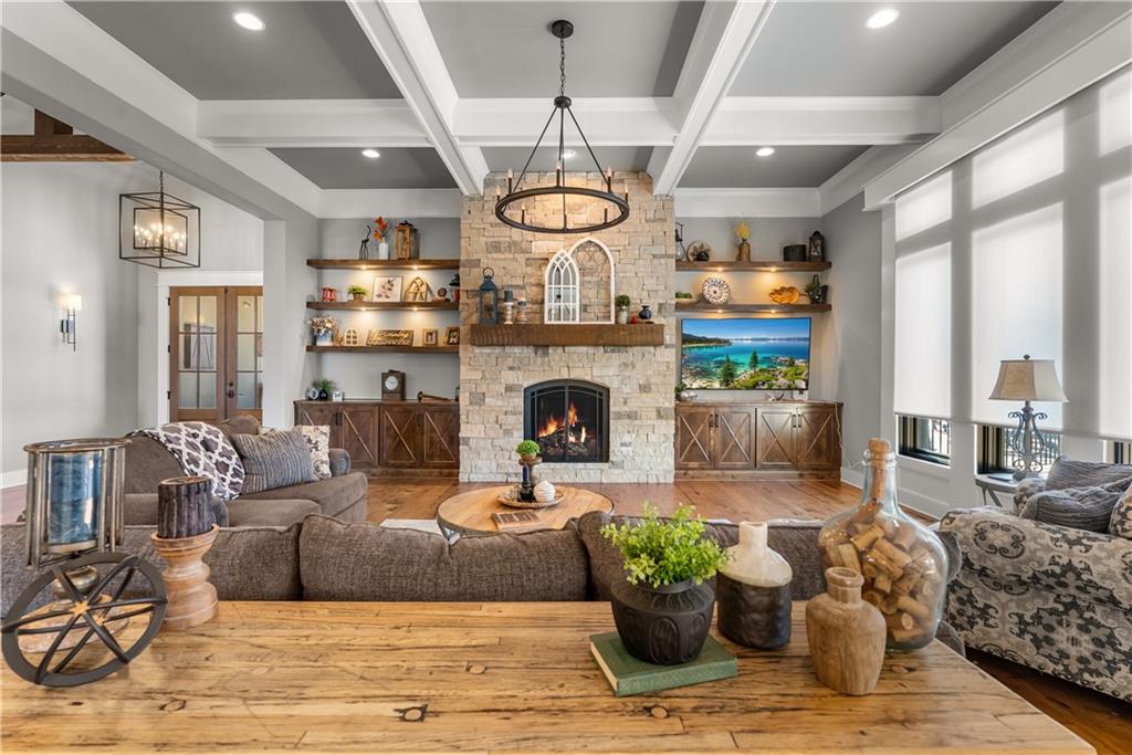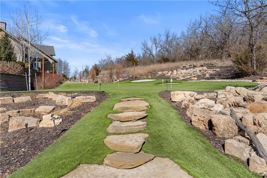Dreams truly come alive in this one-of-a-kind custom Reverse 1.5 Story estate nestled on 9+ breathtaking acres in unincorporated Jackson County within the Lee’s Summit School District. This private retreat offers unmatched craftsmanship, panoramic treetop views & resort-level amenities that cannot be replicated. A grand front porch w/stone accents & custom doors welcomes you into a stunning interior featuring soaring 12-foot ceilings on both levels & architectural detail throughout. The main level showcases a dramatic living area w/west-facing views and a chef’s kitchen designed for everyday luxury and entertaining—complete with oversized island, custom shelving, walk-in pantry, double refrigerator/freezer combo, & oversized gas range. Light filled dining space, coffee bar-perfect for morning routines. The primary suite is a private sanctuary w/direct access to the covered patio for seamless indoor/outdoor living. The spa inspired bath features dual vanities,deep soaker tub, walk-in shower, & a generous walk-in closet w/custom built-ins. A main-level den (or 2nd bdrm) & convenient laundry complete the layout. The finished lower level is an entertainer’s dream featuring an oversized golf simulator & projector ,full wet bar, media/rec space, pool table area, exercise room w/sauna, & 2 additional bedroom suites each w/private baths & walk-in closets. A suspended garage provides rare lower-level 4th garage access—ideal for workshop, car collection, or storage. And then…This resort-caliber setting rivals luxury destinations. The vaulted covered patio w/stone FP creates year-round ambiance. Step outside to a spectacular infinity-edge pool with swim-up bar, tanning ledge, outdoor kitchen, & unobstructed treetop views offering 100% privacy. Entertain in your custom silo bar, practice on the putting green, unwind beside three cascading rock waterfalls surrounded by professional landscaping & custom exterior lighting. A signature property offering an unmatched lifestyle.