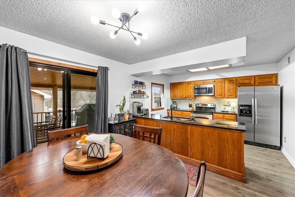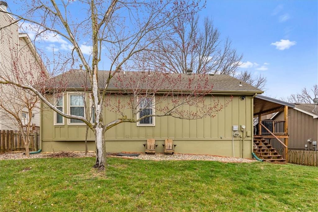 Nestled in the heart of Shawnee, this beautifully updated charmer offers the perfect blend of modern convenience and serene living. Located on a peaceful, tree-lined street just north of Blackfish Parkway, you’ll enjoy easy access to nearby walking and running trails, Shawnee Mission Park, and the 435 loop—truly an unbeatable location! Step inside to discover thoughtful updates throughout, including granite countertops, a stylish backsplash, stainless steel appliances, and a contemporary light fixture in the eat-in kitchen. The rare kitchen pantry is a bonus, especially for a home of this era. The luxury vinyl flooring, newer appliances, and a recently redone driveway showcase the care and attention poured into this home. The finished basement offers additional living space, while the newer covered deck is perfect for hosting outdoor gatherings or simply relaxing with a cup of coffee. The fenced backyard is ideal for springtime fun, and when the weather cools, you’ll love cozying up by the great room’s fireplace. With its move-in-ready condition and prime location, this home is ready for you to settle in and start making memories. Don’t miss your chance to call it yours!