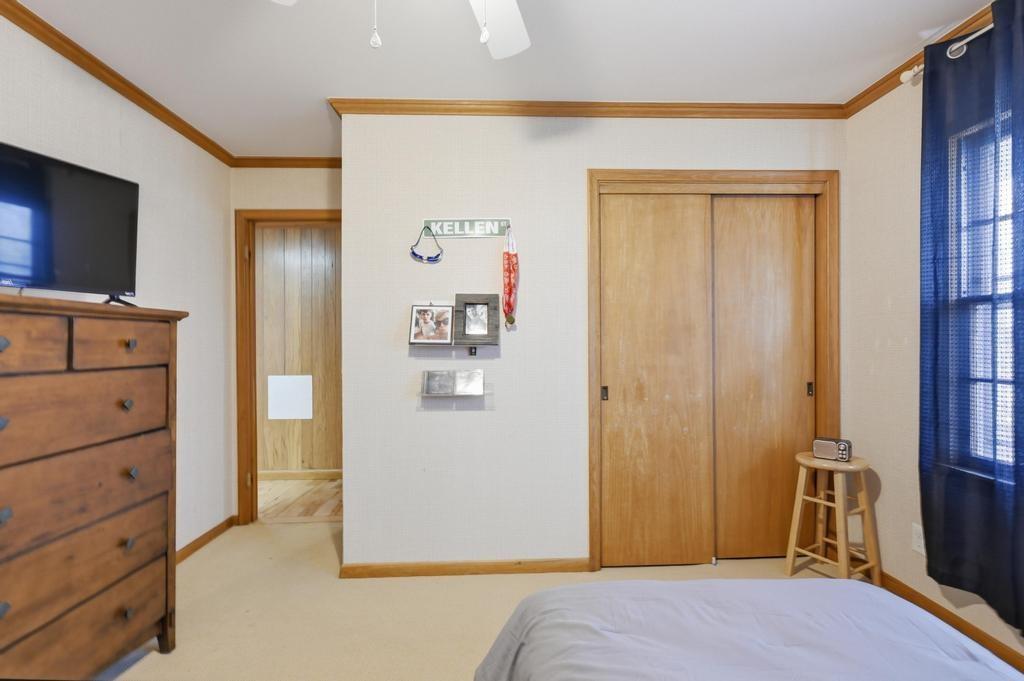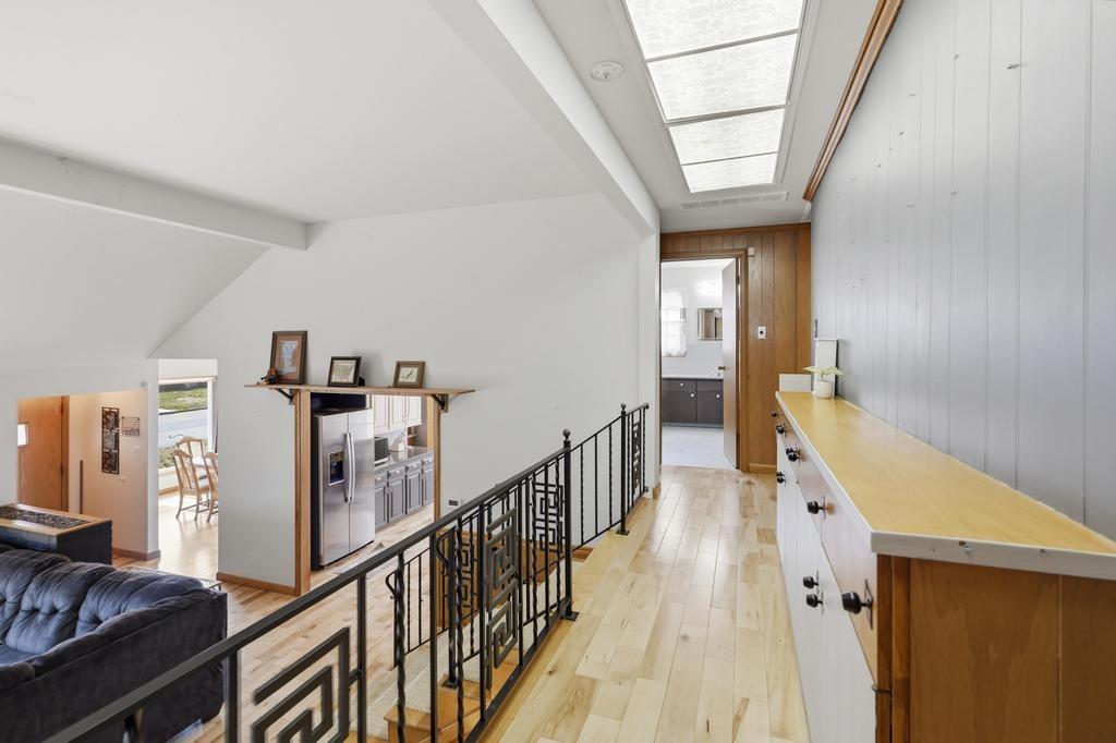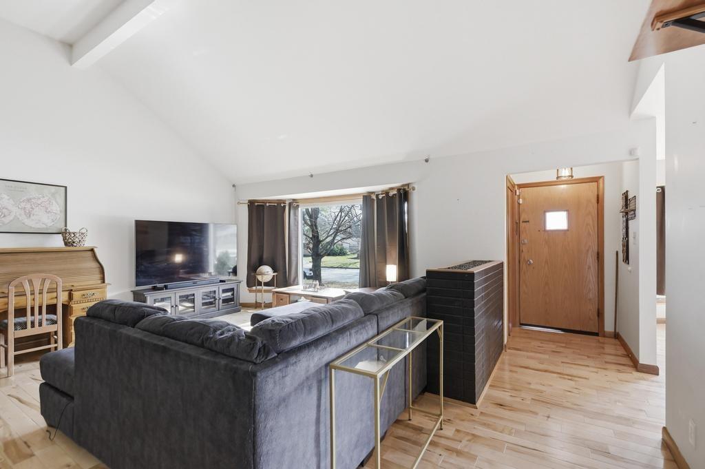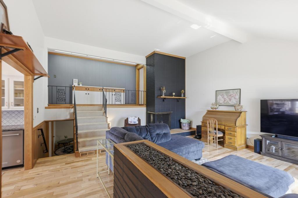 This 4-bedroom, 3-bathroom residence perfectly balances mid-century character with the square footage a modern family needs. This home offers room to grow in a peaceful neighborhood setting. The front of the home stands out with its unique midcentury modern style and two large bay windows that fill the living area with sun. The open-concept two-story open greatroom is anchored by a working floor-to-ceiling gas fireplace, creating a warm and inviting atmosphere the second you walk in. The kitchen serves as a social hub, finished with thick granite surfaces, copper hardware, and a large stainless farmhouse sink. High-quality stainless steel systems ensure the kitchen is ready for holiday meals. Organization is easy here; the laundry room is its own separate space filled with additional cabinetry and a convenient sink for cleanup. The private side of the home is just as impressive. The owner’s suite acts as a personal getaway, complete with dual vanities and dual closets featuring custom shelves. A special bonus room attached to the suite offers a flexible "flex space" for a private library or a spa-like relaxation area. Modern touches like integrated USB outlets and crown molding throughout the upper levels add to the home's quality. Outside, the living space continues with a 0.34-acre yard that is fully fenced for privacy. Whether you are relaxing in the cooled sunroom or sitting by the backyard fire pit, the layout is built for comfort. For those who need extra room for hobbies or gear, the dry unfinished basement provides 1,176 square feet of storage space. This home offers a functional split-level floor plan where every room has a purpose, all set within a tidy neighborhood near local trails, parks, and the town square. Experience a home that provides both architectural style and the space your lifestyle requires.
