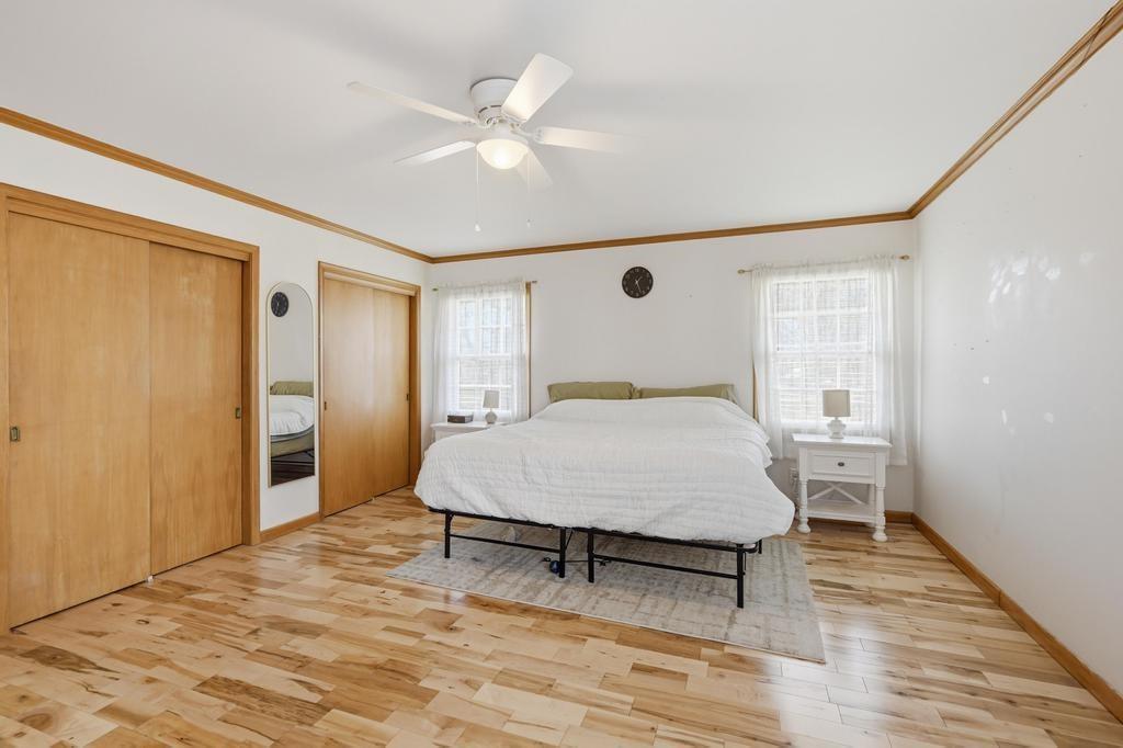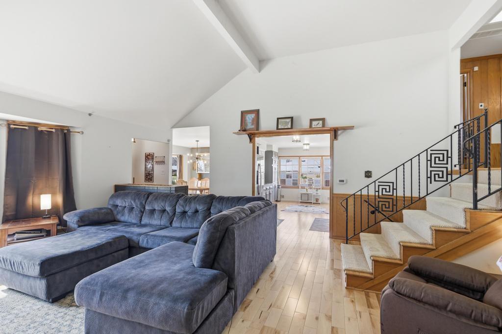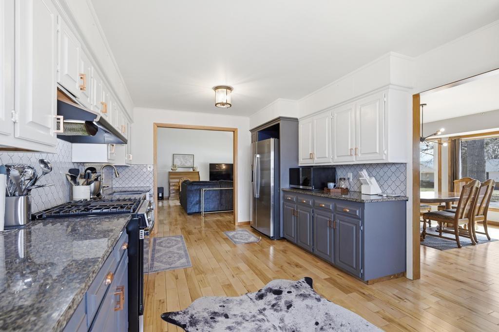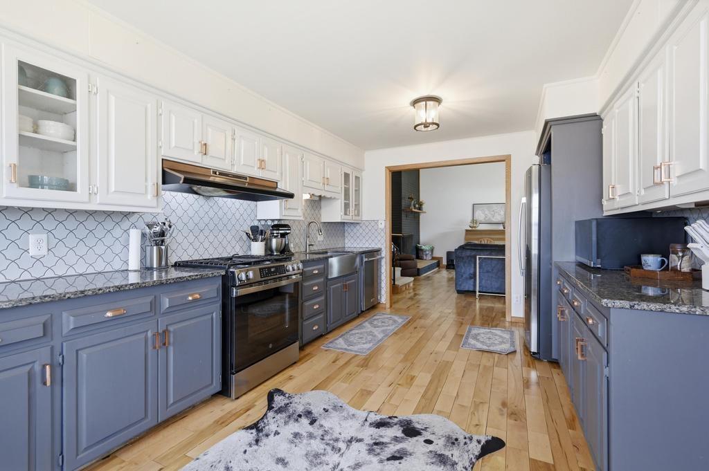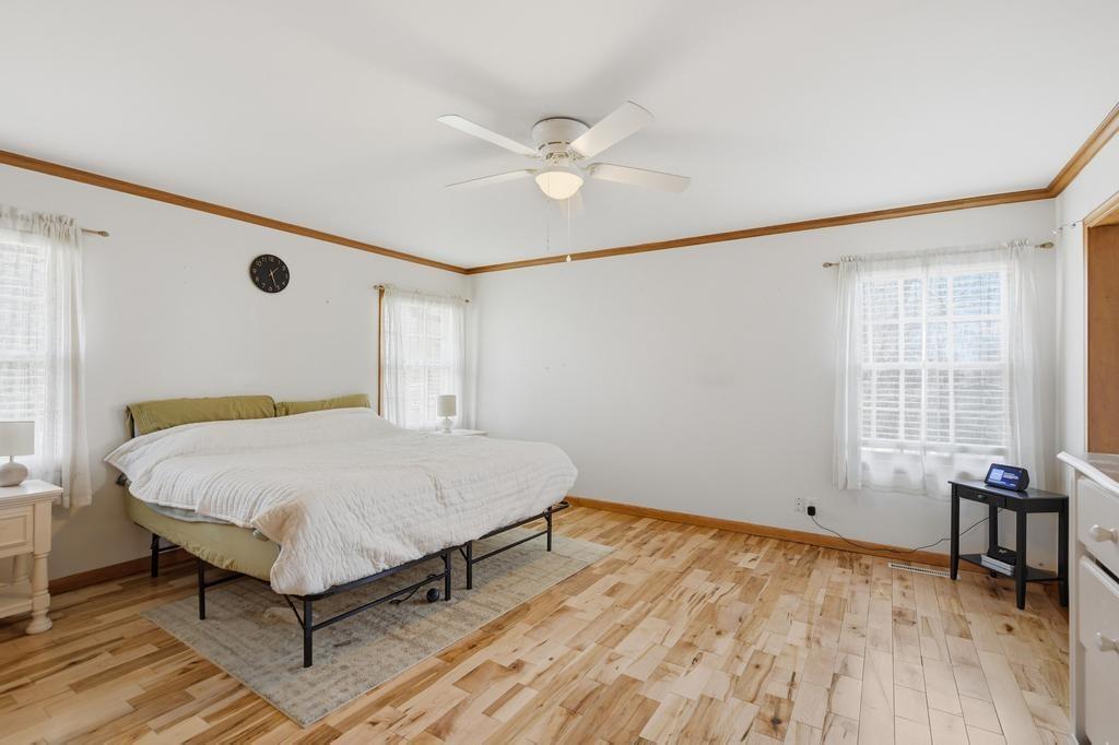 This 4-bedroom, 3-bathroom residence perfectly balances mid-century character with the square footage a modern family needs. This home offers room to grow in a peaceful neighborhood setting. The front of the home stands out with its unique midcentury modern style and two large bay windows that fill the living area with sun. The open-concept two-story open greatroom is anchored by a working floor-to-ceiling gas fireplace, creating a warm and inviting atmosphere the second you walk in. The kitchen serves as a social hub, finished with thick granite surfaces, copper hardware, and a large stainless farmhouse sink. High-quality stainless steel systems ensure the kitchen is ready for holiday meals. Organization is easy here; the laundry room is its own separate space filled with additional cabinetry and a convenient sink for cleanup. The private side of the home is just as impressive. The owner’s suite acts as a personal getaway, complete with dual vanities and dual closets featuring custom shelves. A special bonus room attached to the suite offers a flexible "flex space" for a private library or a spa-like relaxation area. Modern touches like integrated USB outlets and crown molding throughout the upper levels add to the home's quality. Outside, the living space continues with a 0.34-acre yard that is fully fenced for privacy. Whether you are relaxing in the cooled sunroom or sitting by the backyard fire pit, the layout is built for comfort. For those who need extra room for hobbies or gear, the dry unfinished basement provides 1,176 square feet of storage space. This home offers a functional split-level floor plan where every room has a purpose, all set within a tidy neighborhood near local trails, parks, and the town square. Experience a home that provides both architectural style and the space your lifestyle requires.
