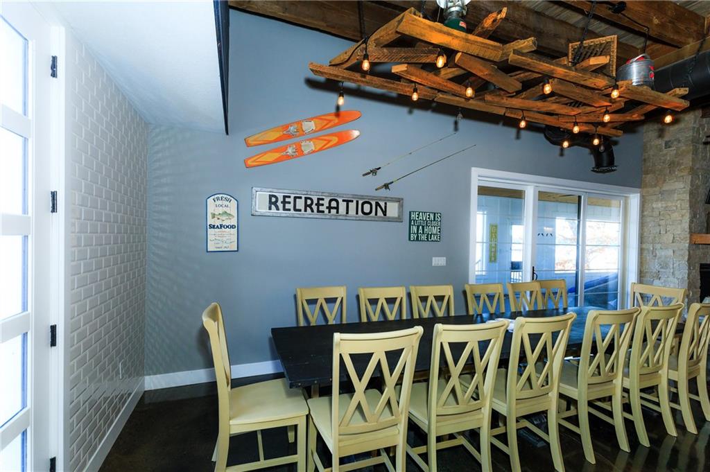 Show-stopping waterfront retreat on 8mm w/spectacular lake views! Impressive work of craftsmanship features reclaimed wood + shipyard beams, custom lighting, & heated floors. This stately, open-concept creates a tranquil feel of rustic sophistication - completely furnished. Striking architectural impact, designed for resort-style living or high-end short term rental earning $2k per night (proven $150k+ yearly), this sprawling estate is built to please a crowd. Gourmet chef’s kitchen boasts state-of-the-art commercial-grade stainless steel appliances w/ impressive 17-ft custom island. Sleeping 25+, this iconic estate offers 6 unique king bedrms, each w/full spa-style baths, incl 2 primary suites w/sitting areas + covered decks. Addl Bunkhouse sleeps 11. Epic game room incl professional-grade pool table & shuffleboard for endless fun. Outdoors, enjoy a massive screened-in patio w/ locker-room-style bathroom - quick outdoor access for swimmers & boaters. Above 2-car garage/workshop - luxury 2-bdrm apartment + loft bed- sleeps 6, perfect for rental. Metal Roof. Deep water, 2-bay concrete cruiser dock + 2PWC lifts. Unparalleled waterfront sanctuary that defines upscale vacation living. Proven rental history @ $2000 per day. The house next door is for sale by the same owner, feel free to tour both.