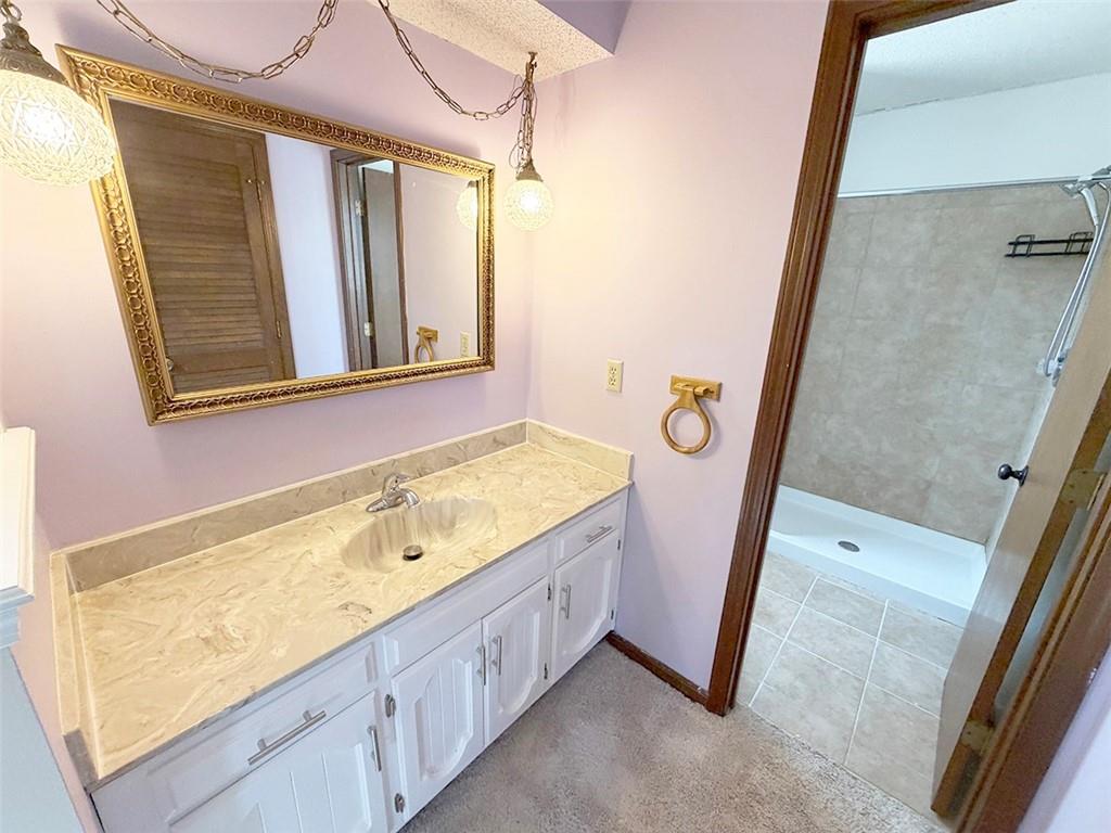 JUST LISTED.. GOING GOING GONE! Need 4 Bedrooms?? this will be a good one. Room, Closet and window in lower level. Open spacious floor plan with oversized entry. Soaring vault in Living room with Masonry fireplace and opens to breakfast area. Formal dining just off kitchen. Kitchen just redone with granite countertops. Builtin Butler station in Breakfast room that walks out to maintenance free 18x11 deck with patio as well. Storage shed. Lot is HUGE and fenced. Oversized 27'x25' garage. Finished lower level has built-in huge desk and wood burning stove. More siting type area and a 4th almost conforming bedroom. Master bedroom is oversized with large walkin closet and private bath