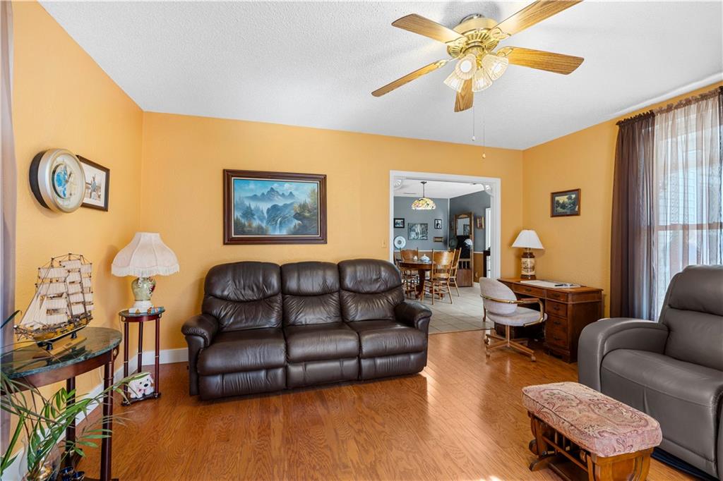This 2 bedroom, 2 bathroom bungalow offers approximately 1,300 square feet of living space with a practical layout and flexible room options. Wood appearance flooring runs through much of the home while vinyl windows allow natural light to fill the main living areas. The formal dining room sits at the heart of the home and serves as a welcoming space for gatherings and everyday meals. The living room flows easily into the dining area, creating a natural connection between the main living spaces. The kitchen provides ample cabinet storage, generous counter space, and a convenient breakfast bar. A main level laundry area located just off the kitchen adds everyday convenience. Both bedrooms are generously sized, including a primary bedroom with a private bathroom featuring a walk-in shower. The second bathroom is accessible from the second bedroom and is also conveniently located for guest use. An additional room offers flexible space that could serve as a home office, hobby room, or extra storage. The layout also provides the option to create a third bedroom if desired, with the current living room easily transitioning into bedroom space while the formal dining room could serve as the main living area and the spacious kitchen accommodate an eat-in dining setup. Outside, the property features a covered front porch, an attached garage with rear entry access, and a detached shed for additional storage. Rear alley access provides convenient garage entry while on-street parking is available at the front of the home. Located in Rich Hill, Missouri, this bungalow offers flexible living space and approximately 1,300 square feet of living area.