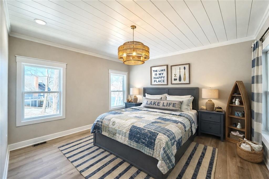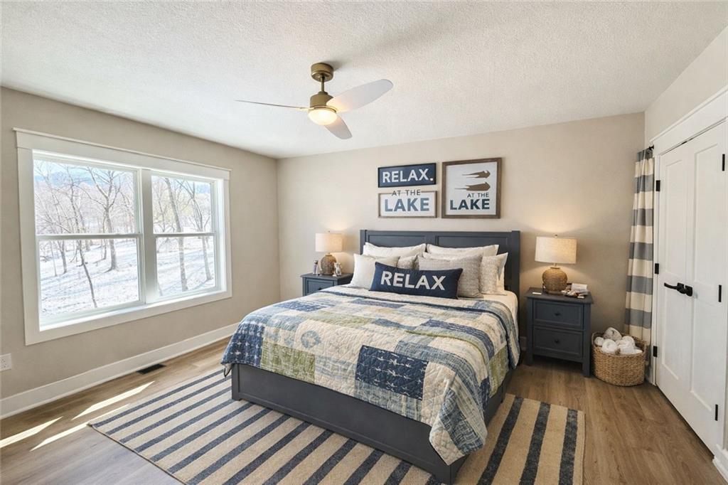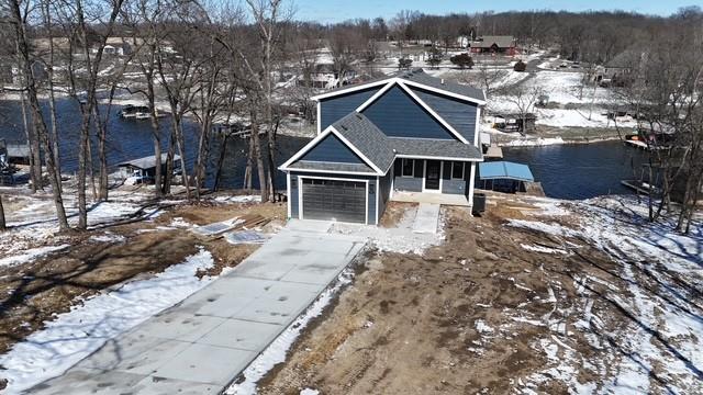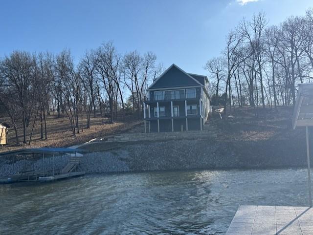 Brand-new luxury lakefront retreat located on Lot 163 with approximately 96 feet of shoreline, perfectly positioned in one of Lake Viking’s most highly sought-after coves. This stunning home offers 3 bedrooms, a spacious bunk room, and 3.5 baths, thoughtfully designed to capture the beauty of lake living while showcasing high-end finishes, exceptional craftsmanship, and effortless functionality. The expansive great room features a dramatic 25-foot floor-to-ceiling stone accent wall, creating a striking architectural centerpiece. The designer kitchen is both elegant and functional, featuring quartz countertops, stainless steel appliances, oversized island perfect for gathering, and a walk-in pantry. The main-level primary suite offers a private lakeside retreat with a large closet and a spa-inspired bathroom that delivers with a tiled wet room. Upstairs, you’ll find a large bedroom, a full bathroom, and an impressive built-in 6-person bunk room. The lower level expands the home’s entertaining possibilities with a spacious family room that opens to the covered deck, a bar and wine rack, an additional bedroom and full bath, and a large unfinished storage/flex space. The property also features a one-car garage, covered dock with lift, and a lakeside fire pit area where nights are spent around the fire sharing stories and creating lifelong memories. With its premium cove location, 96 feet of shoreline, luxury finishes, and thoughtfully designed living spaces, this home offers the perfect setting to fully embrace the Lake Viking lifestyle. This brand-new home includes a 12-month builder warranty from the contractor, providing peace of mind as you begin your next chapter at the lake. This is more than a home—it’s a place to wake up to water views, gather with friends on the deck, and experience lake life the way it was meant to be lived.