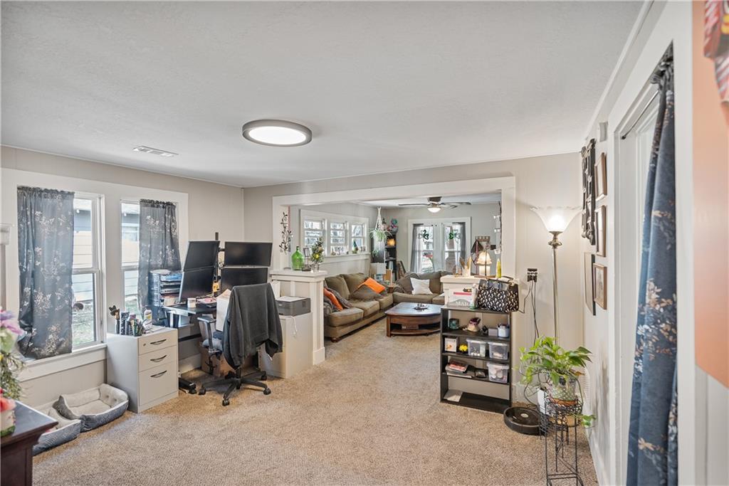 This charming 2-bedroom, 1-bath home offers comfort, versatility, and great value. Featuring a detached 1-car garage and a welcoming covered front porch, it’s the perfect place to relax and enjoy your morning coffee or unwind in the evening. Inside, you’ll find a spacious dining room ideal for family meals or entertaining guests. The home also includes a bonus room that can easily serve as a third bedroom, home office, or playroom for children, giving you flexible space to fit your needs. The property features a fenced-in backyard, perfect for pets, outdoor gatherings, or simply enjoying a bit of privacy. Throughout the home, you’ll appreciate the double-pane windows, which help with energy efficiency and comfort. A central heat and air system that’s only two years old ensures reliable heating and cooling year-round. Whether you're a first-time homebuyer or someone looking to downsize, this home offers the perfect blend of functionality, charm, and potential.