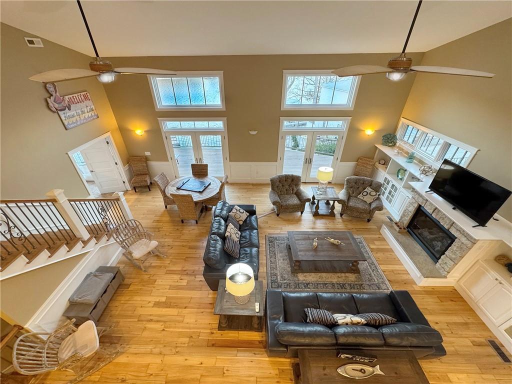 A resort-inspired custom-built lakefront retreat w/ spectacular views on the 8mm, offering upscale design & proven short-term rental appeal. Fully furnished - just bring your friends, family & suitcases and let the vacation begin! This open-concept sleeps 20 & showcases vaulted ceilings in a grand hearth room, highlighted by dramatic windows framing the water. A well-appointed kitchen features stainless steel appliances, custom cabinetry, granite countertops & breakfast bar + additional dining area to feed a crowd. 6 spacious bedrooms include 2 lakeside, private king suites w/ spa-style full baths, & a playful 10-person bunk room. Outside, enjoy a thoughtfully-designed lakeside shower house, spacious screened-in patio, fire pit, barbecue grills, & a fully functional tiki bar with water & electric. Situated in a wide, deep-water cove perfect for swimming, fishing & water sports, the property also includes a two-slip dock w/ tri-toon lift, 2 PWC platform & swim deck. Ideally located by land & water just minutes from dining, entertainment, & local attractions, this exceptional home delivers luxury craftsmanship, lifestyle, & strong rental opportunity in one remarkable property. Proven STR at $1000 per day. The house next door is also for sale by the same owner - feel free to tour both - 32951 Green Hills Rd.