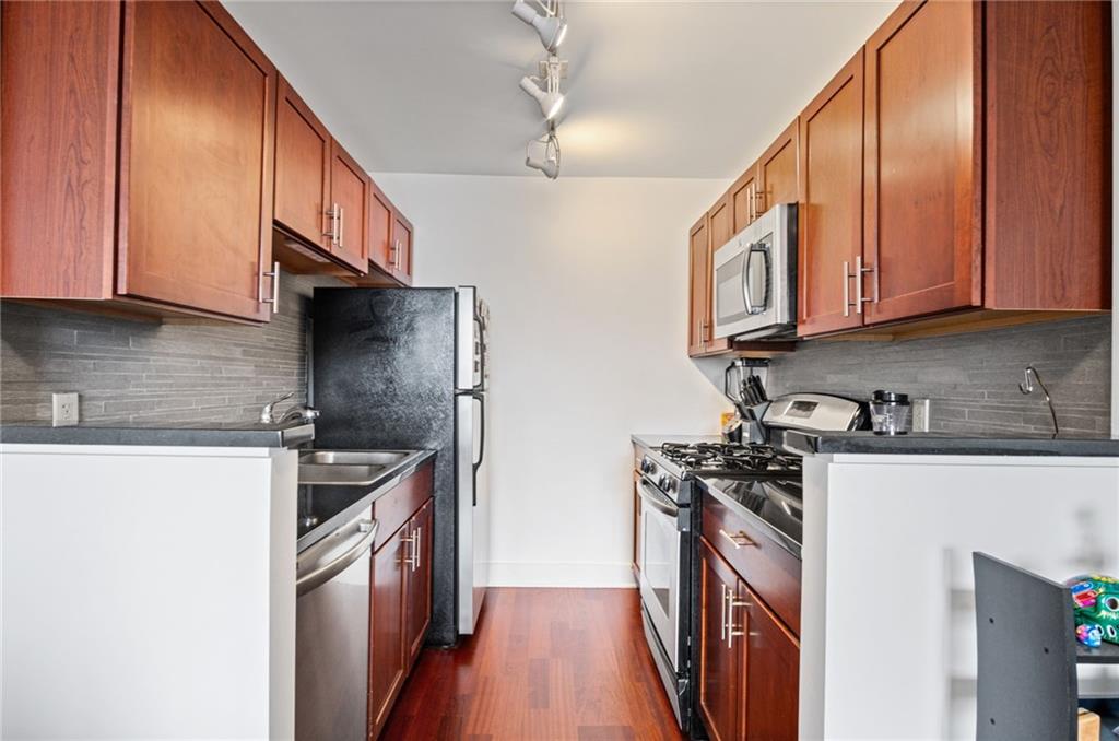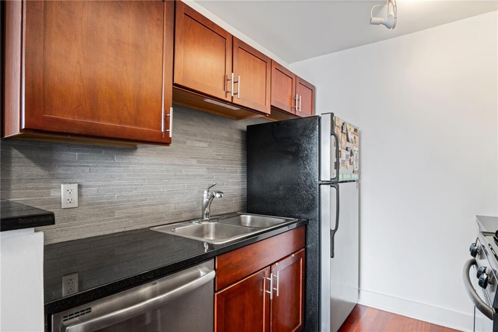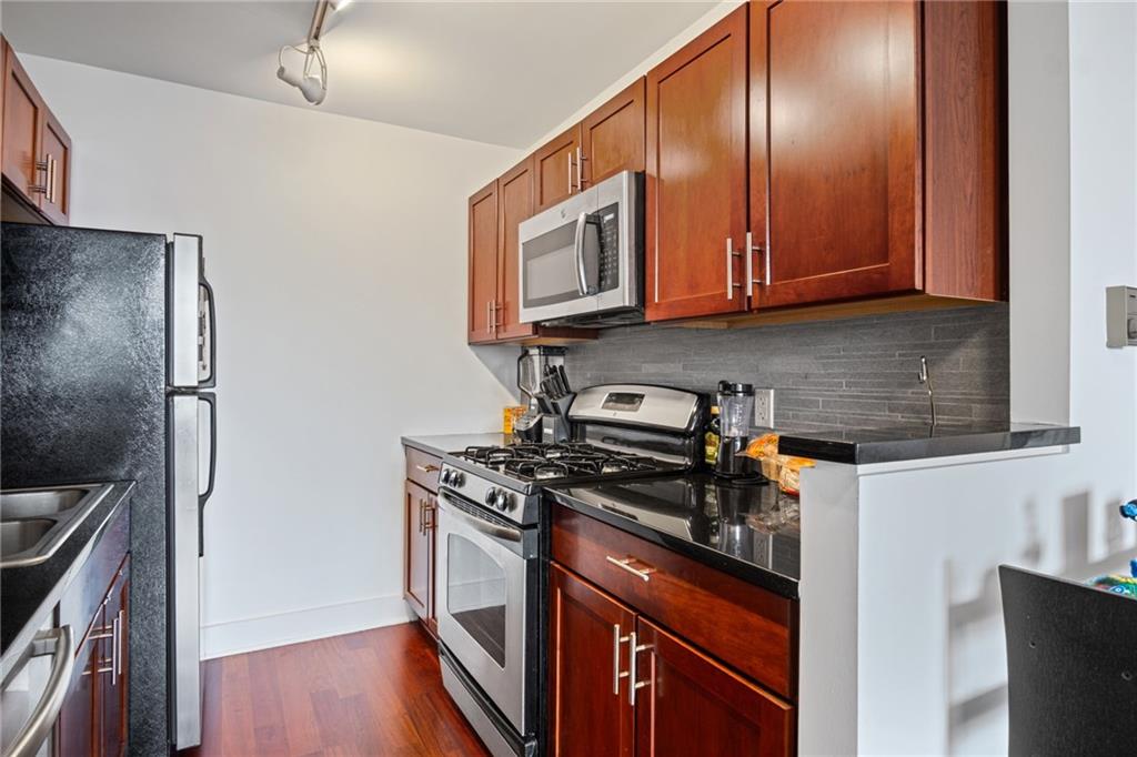 Beautiful and well maintained one bedroom/one bathroom unit at The Metropolitan. This twelfth floor unit puts you two floors from the top and offers south facing city skyline views! Natural light shines through all day long. The unit has been freshly painted and brand new carpet in the bedroom as of Summer 2025. Unit features include vinyl plank flooring, updated countertops and ceramic tile in the kitchen and bathroom. Ample storage and closet space throughout plus washer and dryer hookups, a feature not found in every Metropolitan unit! One attached, secure parking space and additional storage unit included in the sale. HOA dues reflect Association dues only. Gas, Water, and small Electric fee will be billed back to Owner based on usage. Owners will establish a separate account to pay Electric (Lights & Appliance use), Cable, and Internet. Unit is 50% tax abated through 2028. Property taxes were just lowered!! Amenities include: Concierge, Lounge, Marketplace with free coffee, Business Center, Community Laundry, Fitness Center, Saunas, Rooftop Pool, and overnight Security. Close proximity to the Streetcar, River Market, Berkley Riverfront, Garment District, and Power & Light make this condo and building a great catch. Welcome Home to The Metropolitan!