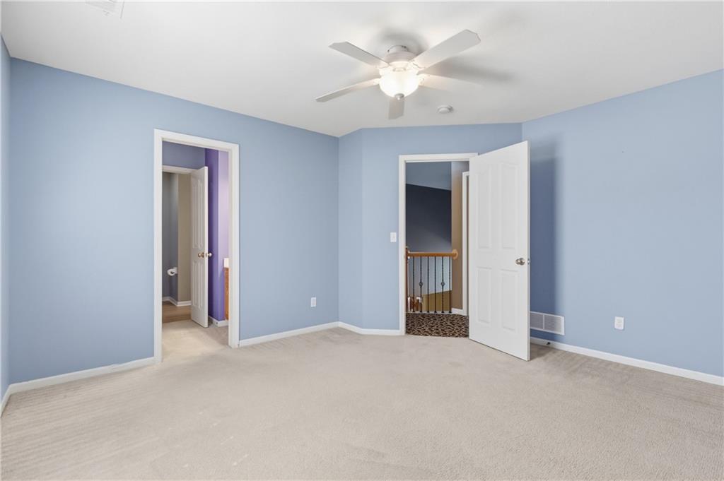 This meticulously maintained home is a great value in this sought after neighborhood! Welcoming entry with curved staircase. Home features hardwood floors in entrance, dining room, kitchen and breakfast room. The spacious great room offers built ins and a cozy gas fireplace. Kitchen boasts painted cabinets, SS appliances and great flow for everyday living. The primary suite features a sitting room, walk in closet, walk in shower and a bath with a jacuzzi tub. Secondary bedrooms offer large walk in closets. Convenient second floor laundry. The W/O lower level is filled with natural light and includes a wet bar and office space. Enjoy treed backyard with a deck and stamped concrete patio. Neighborhood amenities include walking trails, stocked pond, play area, and community pool, all just minutes from the elementary and middle schools. Home is surrounded by a 400 acre nature preserve with lakes, paved trails and abundant wildlife. Located in award winning Blue Valley Schools and convenient to shopping, dining, parks and quick highway access.