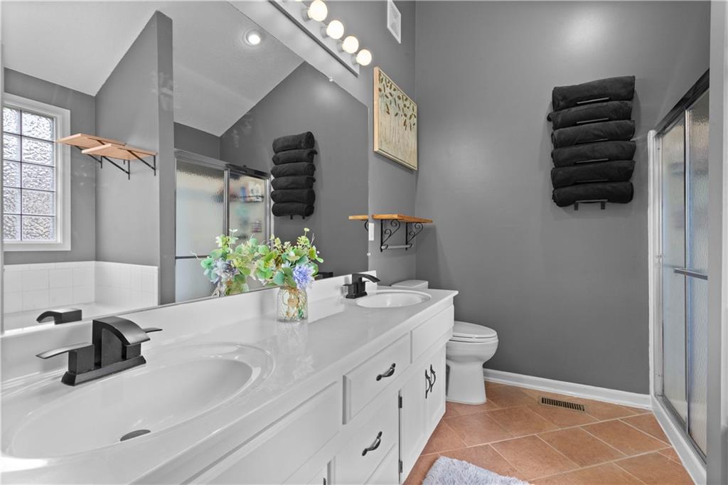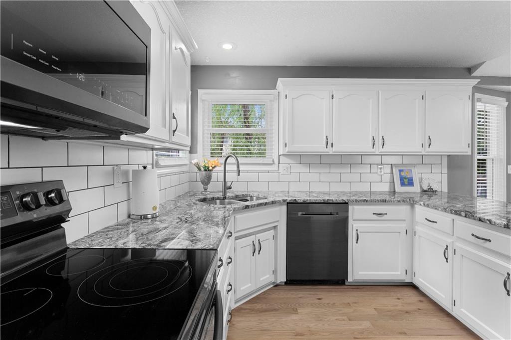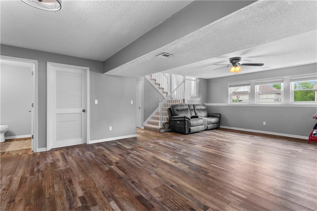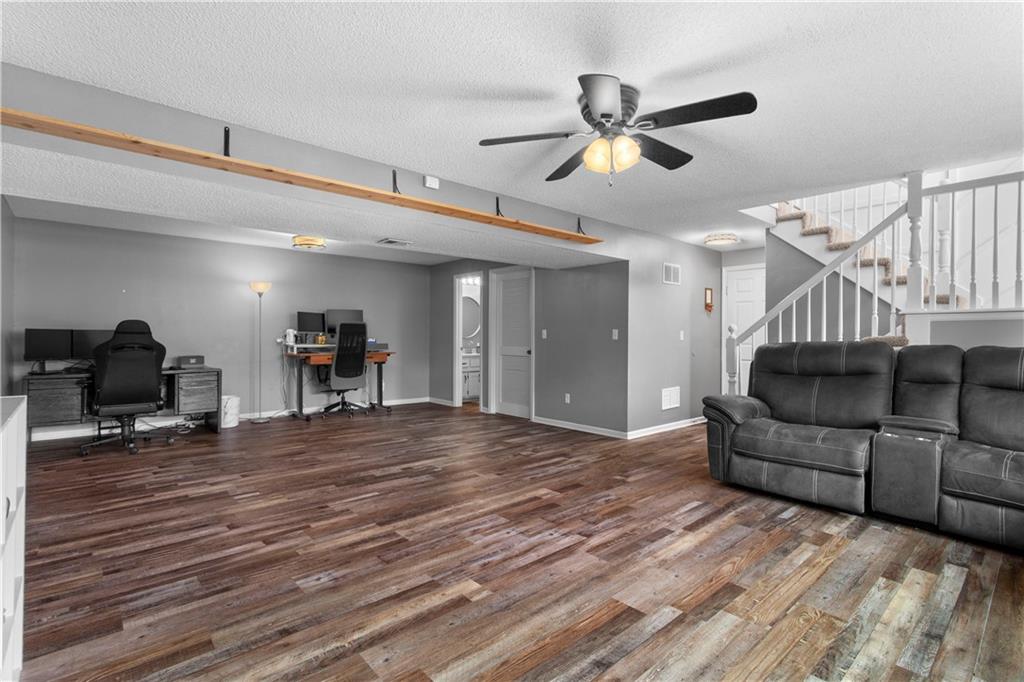 Beautiful home with open, floorplan in Stoney Creek Estates. Owners have taken exceptional care of this home and invested in significant improvements. New roof and gutters (2024) with transferable warranty. All windows have been replaced (2025) also with a transferable warranty. Newly painted exterior and some interior. Brand new hardwood floors. Newer microwave and stove. 3 car oversized garage. Great room has vaulted ceiling, and fireplace with gas starter. Kitchen has stainless steel appliances, granite countertops, and a walk-in pantry. Washer and dryer stay and are conveniently located on the bedroom level. Primary bedroom has 2 closets. Family room on lower level offers additional living space, half bath and is a perfect area for entertaining. Work bench in garage. Step outside to a large deck overlooking the fenced backyard, which is ideal for entertaining, grilling, or relaxing. Landscaping has been upgraded and is easy to maintain. Stoney Creek Estates offers fantastic amenities, including trash, recycling, and yard-waste services, plus access to three pools, two playgrounds, and beautifully maintained common areas.