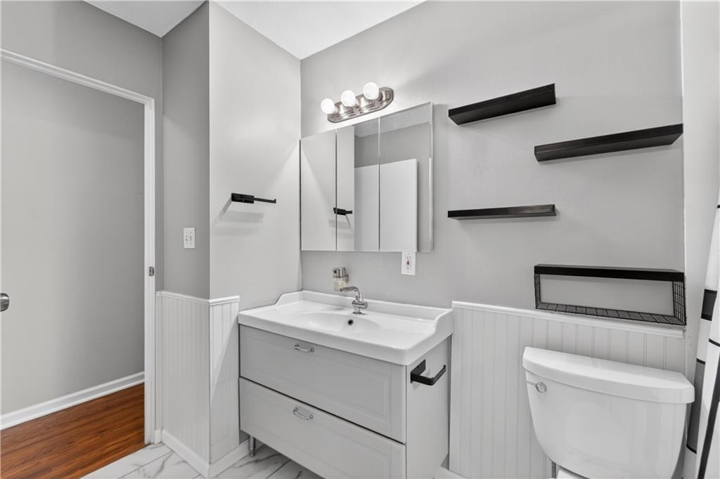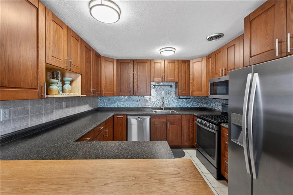 Charming and move-in ready, this beautifully updated 3-bedroom, 1.1-bath split-level blends style, space, and functionality. Featuring today’s most sought-after finishes, the home offers rich hardwood floors, sleek countertops, stainless steel appliances, and a warm, neutral palette throughout. The light-filled main living areas flow seamlessly for everyday living and entertaining. The finished lower level adds versatile space—perfect for a media room, game area, or home office. Upstairs, generously sized secondary bedrooms offer great natural light and ample closet space, along with well-appointed bathrooms. The spacious primary suite features hardwood floors, abundant natural light, and a private en suite with sleek finishes, a vanity with deep drawers, and a shower/tub combination. Enjoy the fully fenced backyard with a covered patio—ideal for relaxing or entertaining year-round. This home truly checks all the boxes with its thoughtful updates, spacious layout, and inviting indoor-outdoor living.