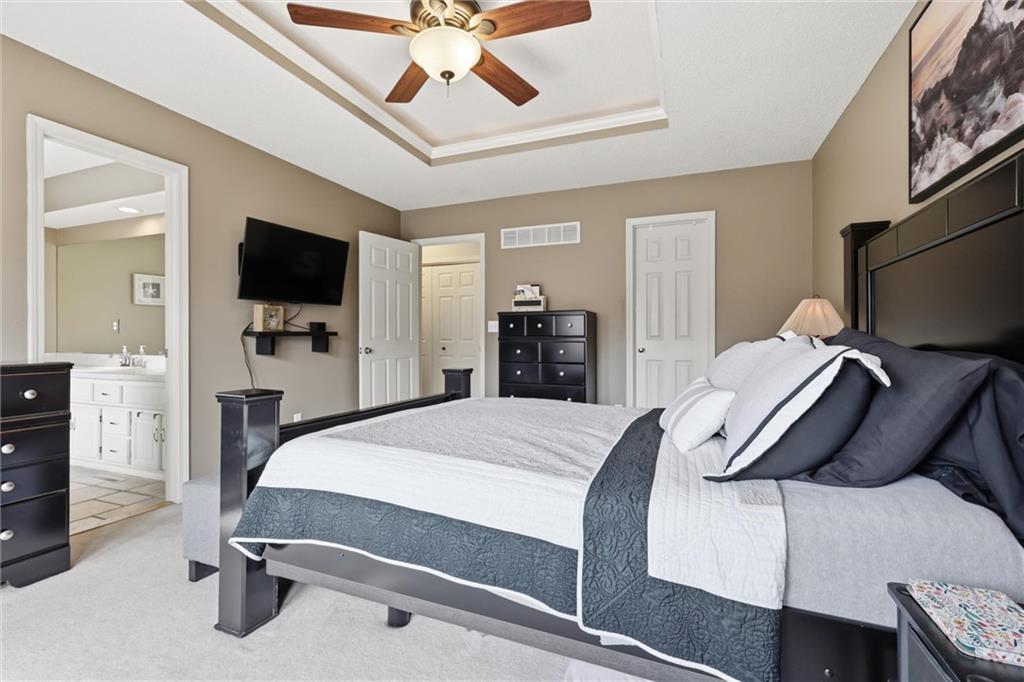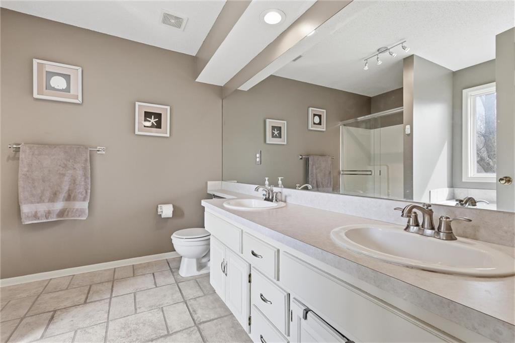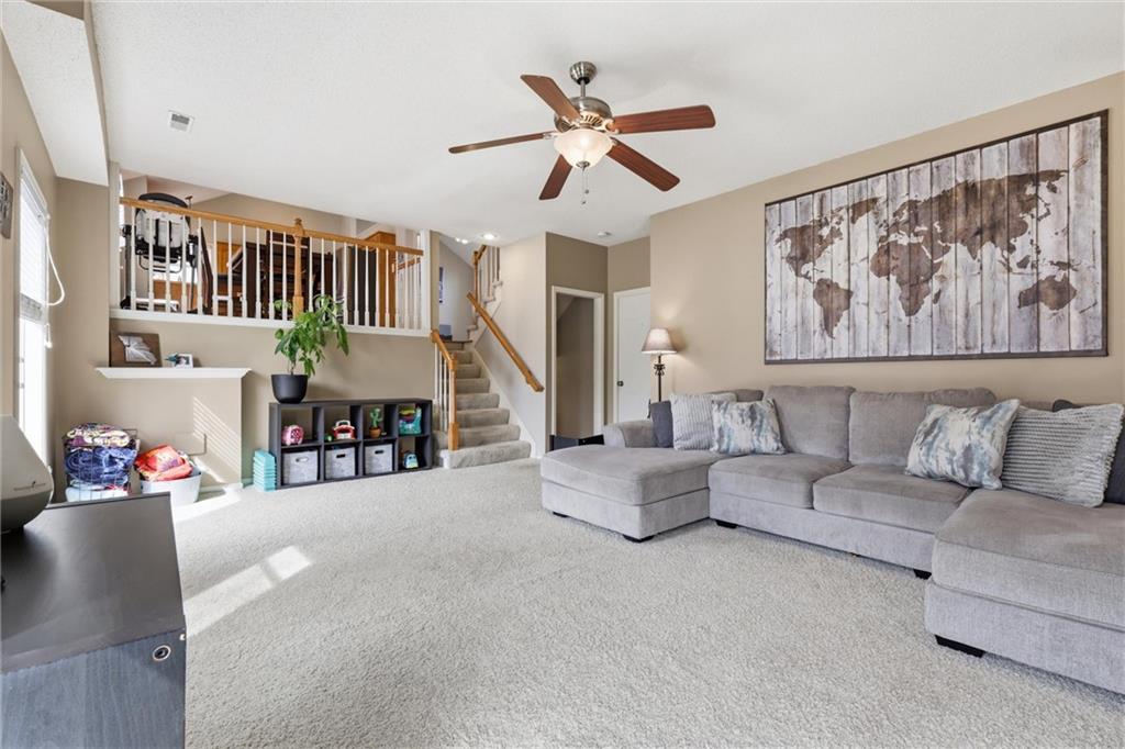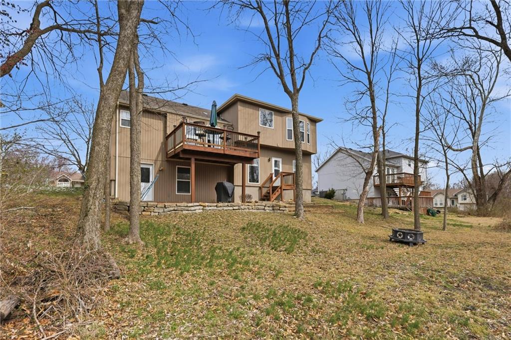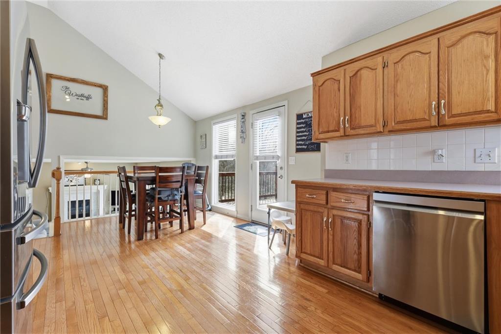 OPEN HOUSE SATURDAY 3-21, from 12-2pm. Discover this spacious and well-maintained 4-bedroom, 3-bath home featuring an oversized 3-car garage. Upon entry, you’ll find two inviting living areas and beautiful hardwood floors that extend through the kitchen and breakfast nook, highlighted by vaulted ceilings that create an open and airy feel. The Kitchen features NEW stainless steel appliances, tons of cabinets and ample counter space, overlooking the second family room, where there is a cozy gas fireplace that adds warmth and charm to this home. To top it off, this home offers a generously sized primary suite with vaulted ceilings, a walk-in closet, and an en-suite bath complete with a jetted tub and double vanity. For added convenience, three bedrooms and the laundry room are located on the same level. And the finished basement includes a private fourth bedroom with its own entrance and bathroom—ideal for guests, extended family, or added privacy. Step outside to a backyard that backs to a wooded area, providing privacy and a setting perfect for entertaining. Conveniently located with easy access to I-35, this home offers both comfort and accessibility. NEW Roof, gutters, and gutter guards in 2019, NEW HVAC in 2018, NEW Insulation in 2017!