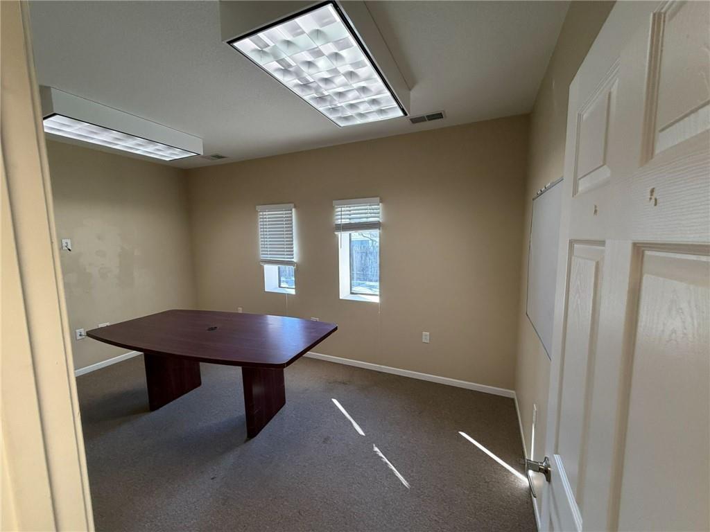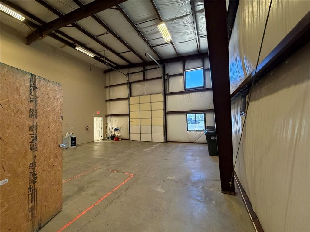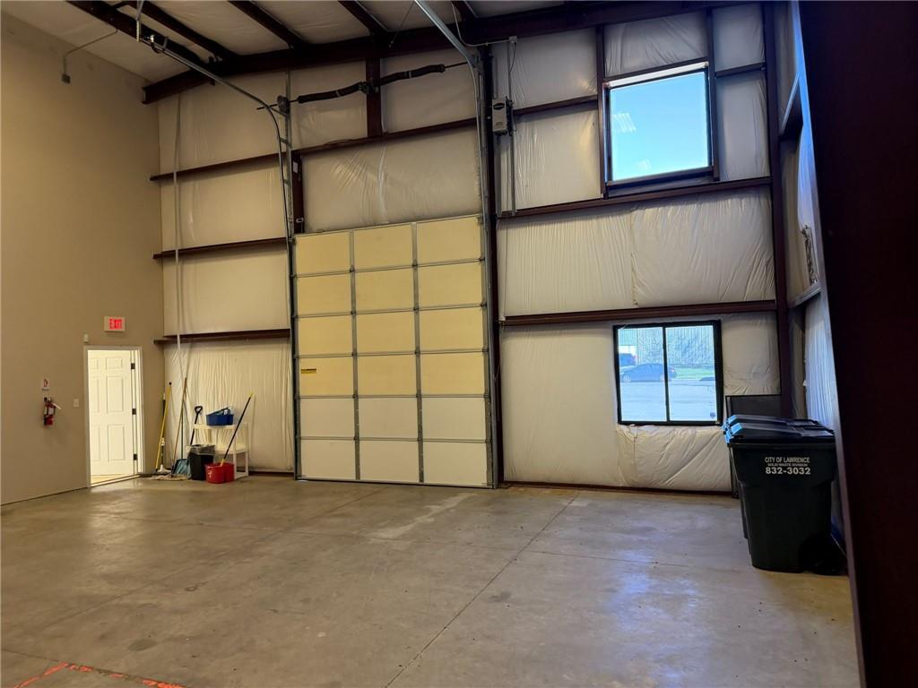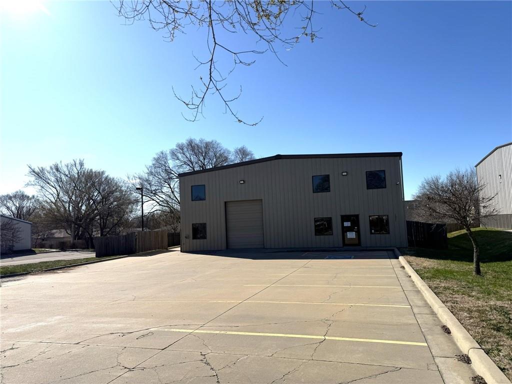 Professional office/warehouse flex space for lease only in a prime Lawrence commercial corridor near 23rd St and Haskell Ave, available immediately. Built in 2011, this well maintained 3,025 SF building offers an efficient layout that suits a variety of professional, service, and light industrial users seeking both image and function. Approximately 1,856 SF of finished office space includes 6–7 private offices, a dedicated conference room, server/copy room, kitchenette, reception area, and three restrooms total, including one private restroom with shower—ideal for staff working long or active shifts. The balance of the main level is a heated warehouse area with a 10' x 12' overhead door, providing practical space for inventory, equipment, or light distribution needs. Above the office and reception area is an additional 1,775± SF climate controlled mezzanine with mini splits—separate from and not included in the building’s stated 3,025 SF—that offers valuable flexibility for storage, light production, creative space, or future build out. Paved parking with 11 striped stalls (1 ADA), a security system with cameras, and CS zoning complement the property’s convenient access to major Lawrence routes and nearby amenities. Ownership’s target structure is a three year lease, yet lease term and related details are open to discussion with qualified tenants.