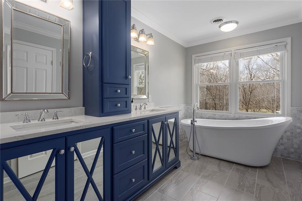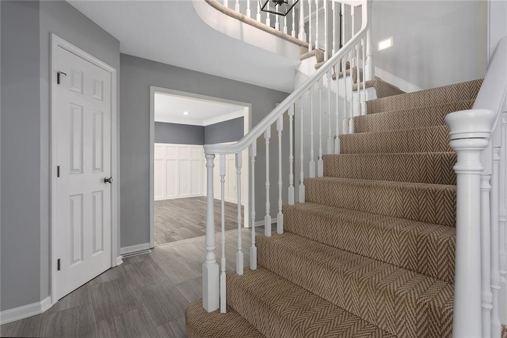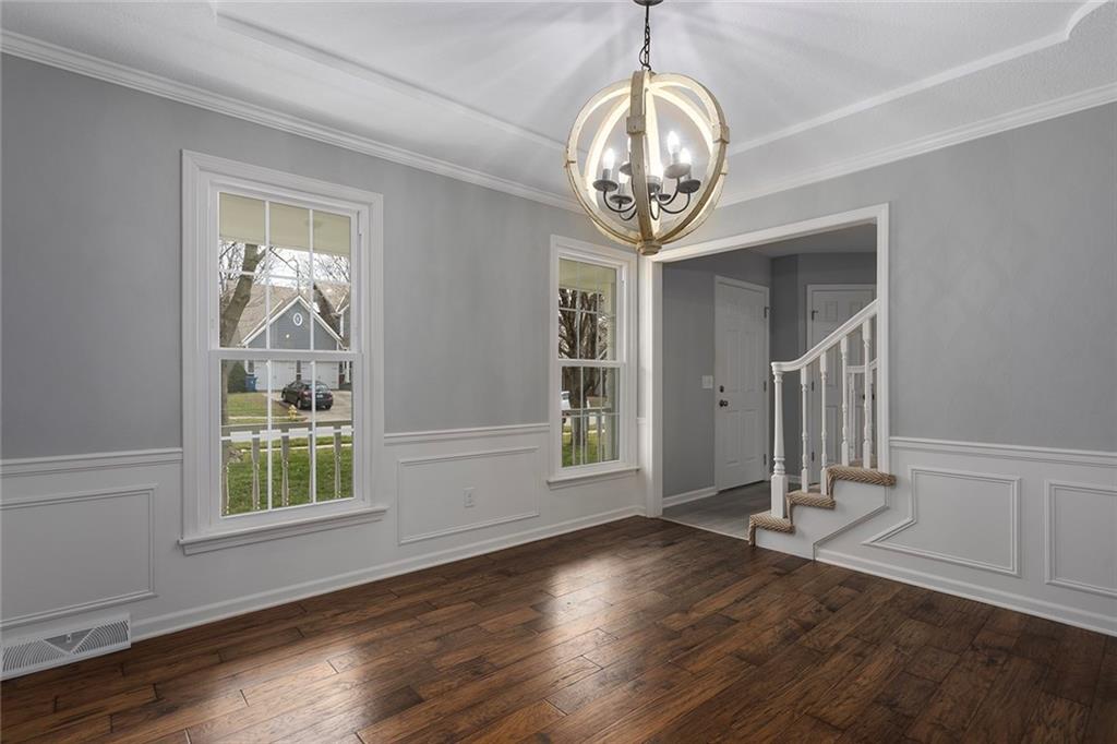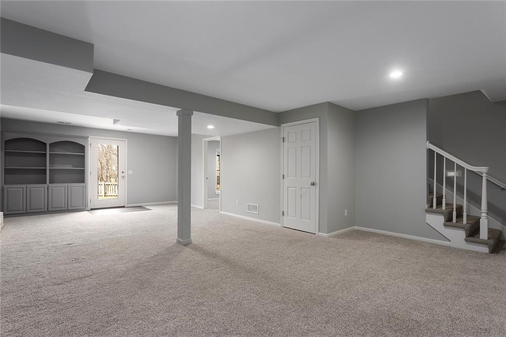 Designer Show Stopper. New gourmet dream kitchen with quartz oversized center island, double ovens, pantry, coffee bar and beverage fridge. Neutral decor throughout. Spacious Master suite features a cozy sitting area and fireplace. Newly remodeled master bath with free standing tub. Spacious closets. Finished walkout lower level with 5th Bedroom and full bath for separate living quarter. Nature lover's dream come true backing to trees, park and walking trail. Freshly painted exterior. One of the most sought after communities in Liberty. Walk to the New Liberty school. This home has everything you have been looking for. Immaculate condition. Nothing to do here but move in. Upgraded designer wood entry flooring. Engineered hardwood on main level. 1/2 bath off of kitchen and first floor laundry. Great room and formal living and dining room or first floor office area. Plenty of space to spread out and work from home. Close to schools, shopping and entertainment and major highway. All fresh interior paint and brand new windows.