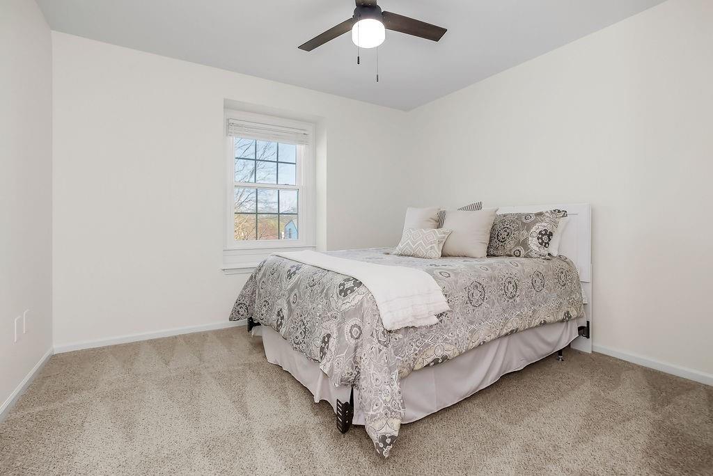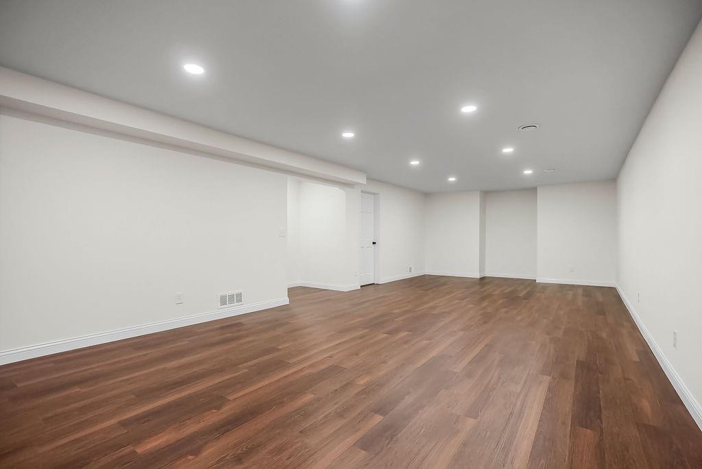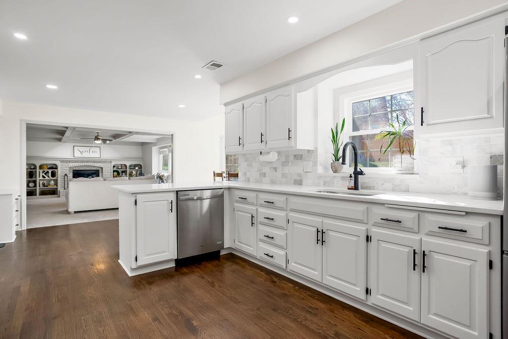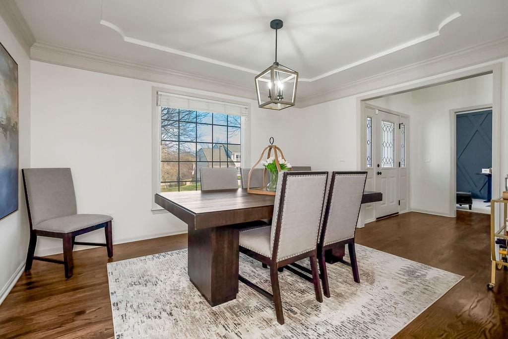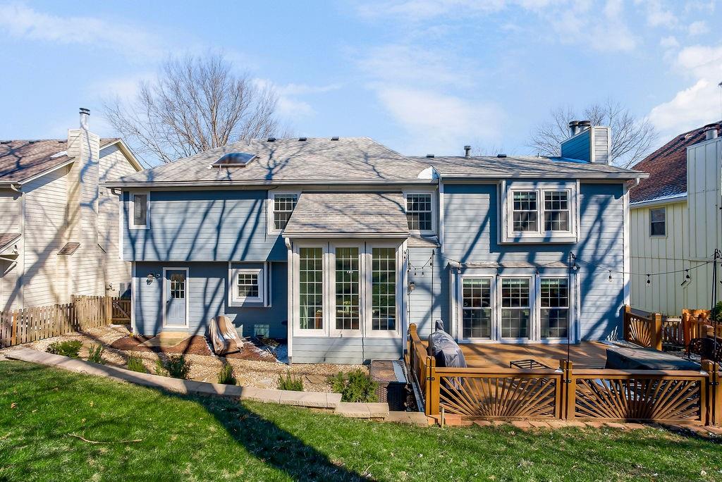 Beautifully updated and move-in ready, this stylish two-story home offers the perfect blend of modern finishes and comfortable living. The main level features rich hardwood floors, a formal dining room, and a spacious living room with coffered ceilings, abundant natural light, and seamless flow into the bright, renovated kitchen complete with white cabinetry, quartz countertops, stainless appliances, and a large island with seating. A versatile front room makes an ideal home office or flex space. Upstairs, the generous primary suite with large sitting room boasts a spa-like bath with dual vanities, soaking tub, and walk-in shower, along with well-sized secondary bedrooms. The finished lower level provides additional living or recreation space. Enjoy outdoor living on the deck overlooking the fenced backyard. With updated interiors, thoughtful design, and great curb appeal, this home truly checks all the boxes.