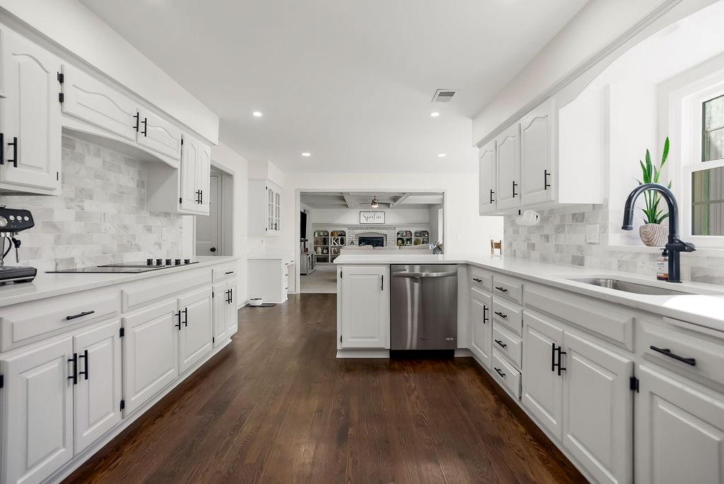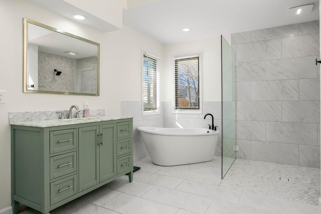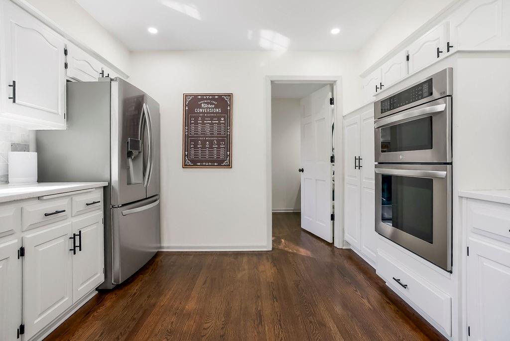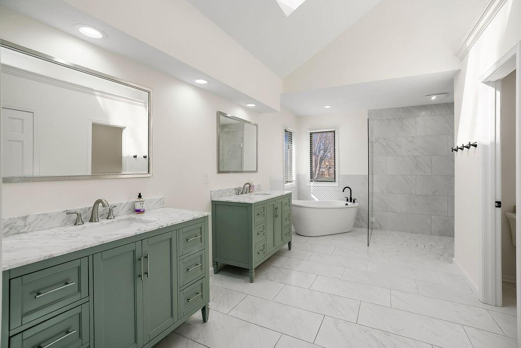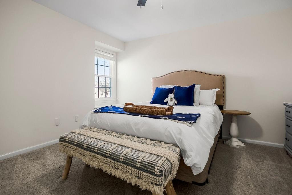 Beautifully updated and move-in ready, this stylish two-story home offers the perfect blend of modern finishes and comfortable living. The main level features rich hardwood floors, a formal dining room, and a spacious living room with coffered ceilings, abundant natural light, and seamless flow into the bright, renovated kitchen complete with white cabinetry, quartz countertops, stainless appliances, and a large island with seating. A versatile front room makes an ideal home office or flex space. Upstairs, the generous primary suite with large sitting room boasts a spa-like bath with dual vanities, soaking tub, and walk-in shower, along with well-sized secondary bedrooms. The finished lower level provides additional living or recreation space. Enjoy outdoor living on the deck overlooking the fenced backyard. With updated interiors, thoughtful design, and great curb appeal, this home truly checks all the boxes.