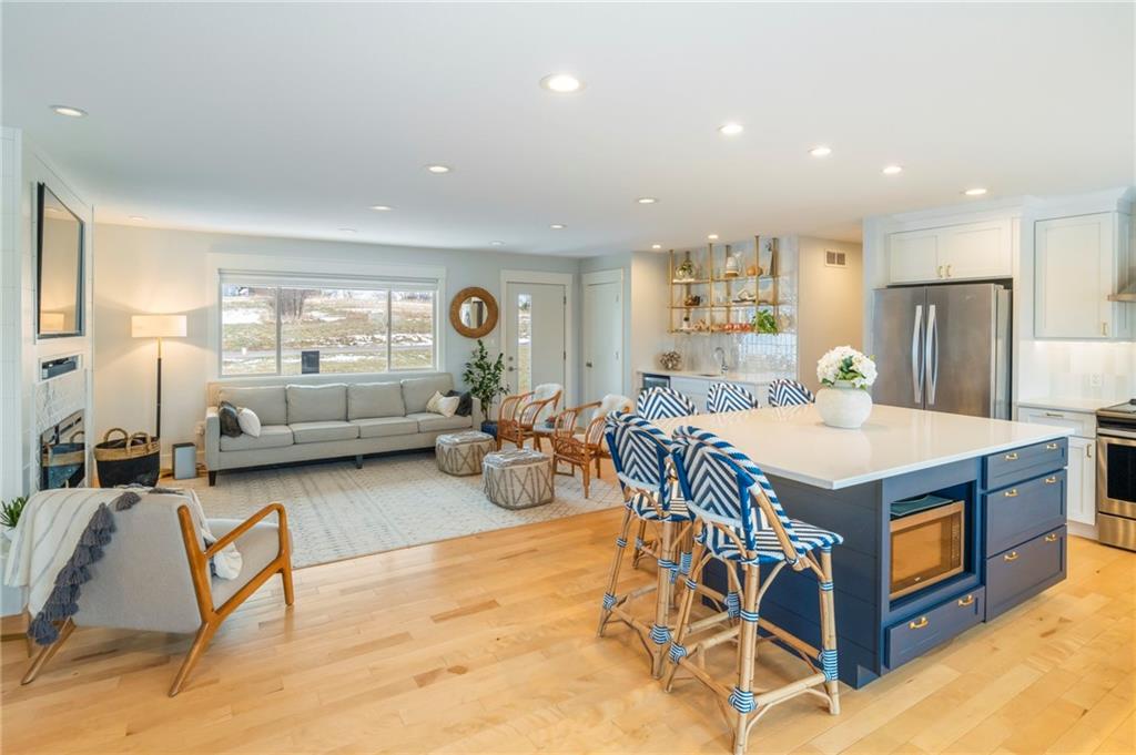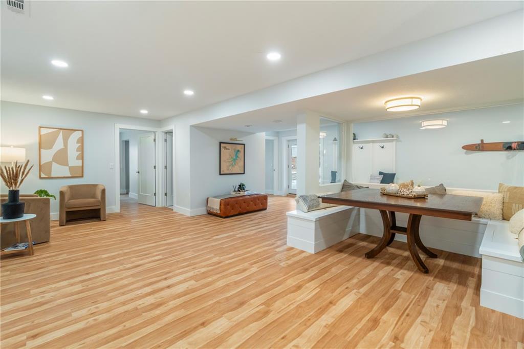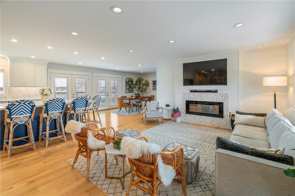 Modern, fun, and Turn-Key, this lakefront retreat is ready for you to enjoy! This beautifully remodeled 5-bedroom waterfront home is designed for ultimate summer living, complete with a dock and pavilion perfect for soaking up the sun. Move-in ready and thoughtfully designed for comfort and convenience, the home features two kitchens, two laundry areas (one on each level), and five spacious bedrooms. Step outside and enjoy the spacious deck, beautiful sidewalk down to a concrete patio right at the water’s edge, creating the perfect setting for relaxing or entertaining. Inside, you’ll love the bright, refreshing finishes that truly bring lake life to life. The main level showcases a soothing color palette, hardwood floors, and updates throughout, including new HVAC, plumbing, electrical, siding, and windows, this home has been remodeled down to the studs. The kitchen features stunning quartz countertops, stainless steel appliances including a dishwasher, and a stylish wet bar. The lower level is just as impressive, offering a second kitchen with dishwasher, eat-in dining area, 2 bedrooms, and two twin-to-king trundle daybeds. Additional highlights include built-in cubbies, banquette seating, and beautifully tiled bathrooms. Conveniently located near the main entrance and just moments from the clubhouse, salt water pool, marina, and beach, you’ll love having summer fun right at your fingertips—including food trucks within easy reach. Lake life is calling, don’t miss your chance to make it yours! The yard is in the process of being seeded and reworked due to newly installed lawn irrigation and recent improvements.