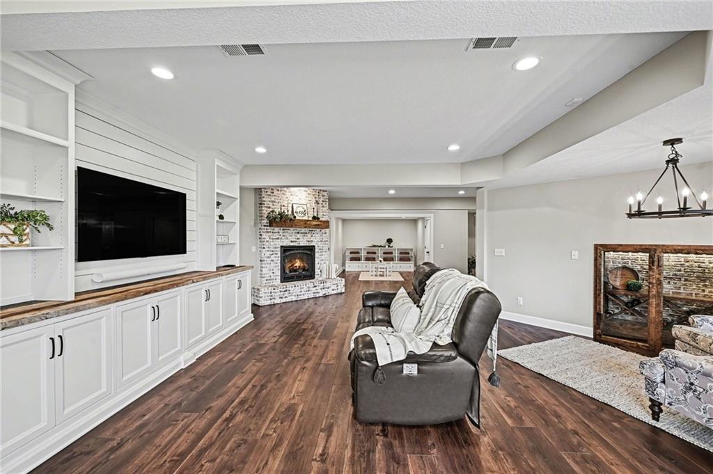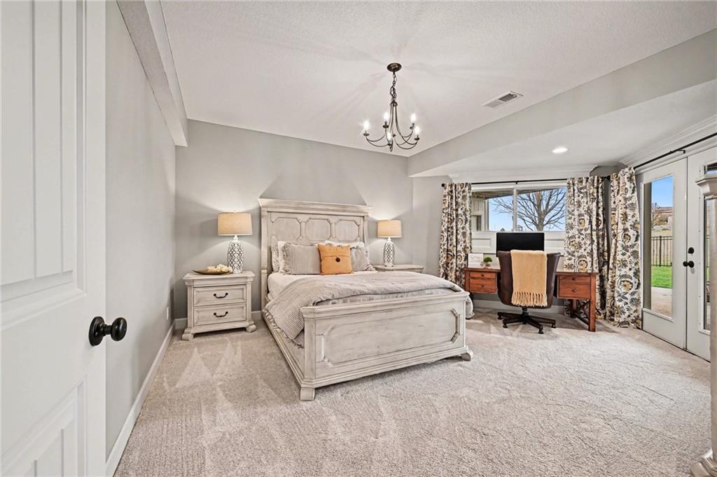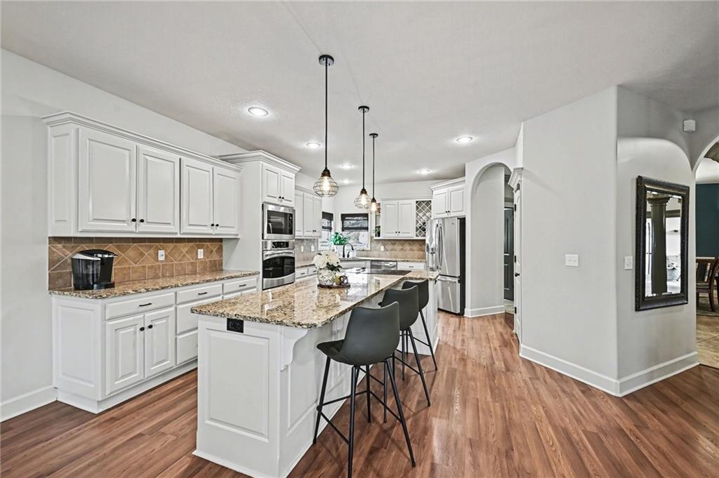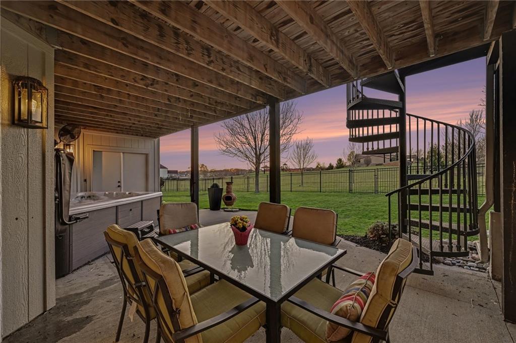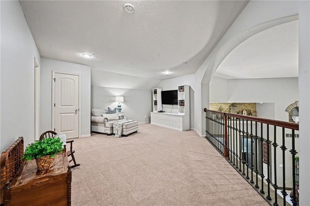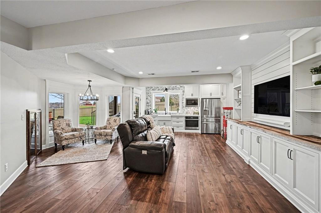 Welcome home! This 5 BR, 4.5 Bath 2-story home with 5,068 finished sq ft plus an additional 1,150 workshop in the basement, is ready for new owners. The main level has new paint and new carpet in the bedrooms and the formal living room, and includes an oversized primary bedroom suite with private bath and a large walk-in closet, with a walkout door to a screened patio. The 2 story-high vaulted ceilings in the formal living room and the dining room flow nicely into the kitchen/dining/hearth room, complete with newly painted cabinets, granite countertops, a spacious island, and gas fireplace. Ready for cozy evenings and easy entrance to screened-in porch to capture stunning sunsets. Main-level living with a laundry room right off the kitchen. The 3-Car garage has two garage door openers & features a utility sink. Second floor has its own HVAC system and includes a spacious loft overlooking the main-level living room and a hidden extra storage space over the garage. The second bedroom has a large walk-in closet & a private bathroom, which is also accessible from the loft area. Bedrooms three & four share a Jack & Jill bathroom with private sinks for each bedroom. The 2021 finished basement includes a large family room exiting to a covered patio, a built-in wine storage area, fireplace, and kitchenette with quartz counters, a luxury bath, a bedroom with private patio doors exiting to a covered patio, an exercise room, and extended finished area that could be converted to theater room, playroom, or extra extended living space. The generous 1,150 sq foot workshop off the finished basement includes a utility sink, a built-in workbench, exterior double doors for easy access to projects, storage, or hobby space. Stubbed for a 5th full bathroom. Outdoor features include manicured landscaping, full wrought-iron fencing, backs up to HOA greenspace & close proximity to a full playground, community center, pool, and walking trails. New, high-impact-resistant roof installed.