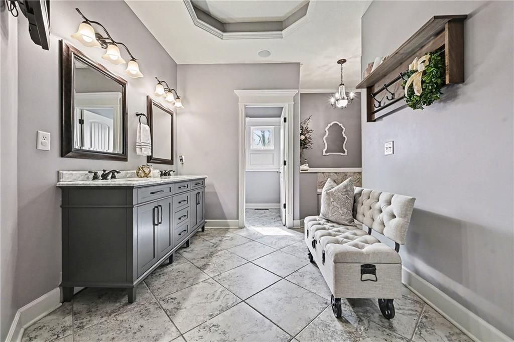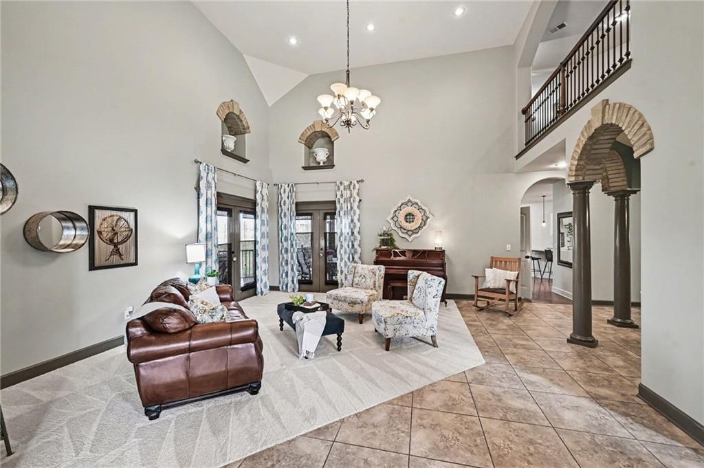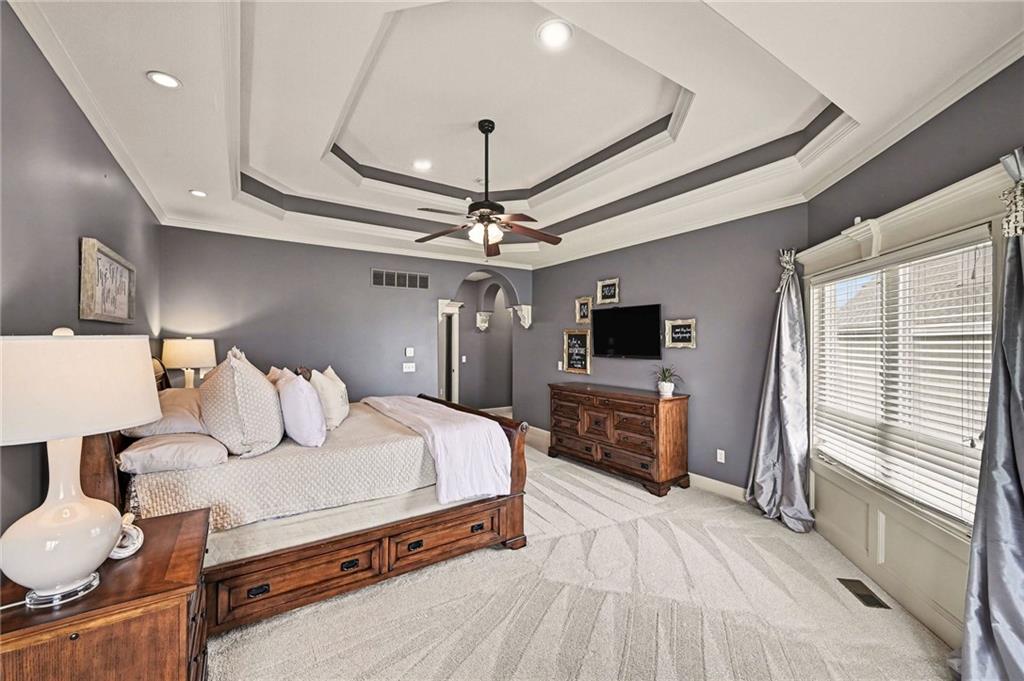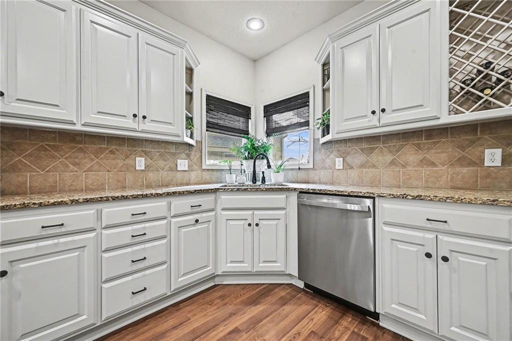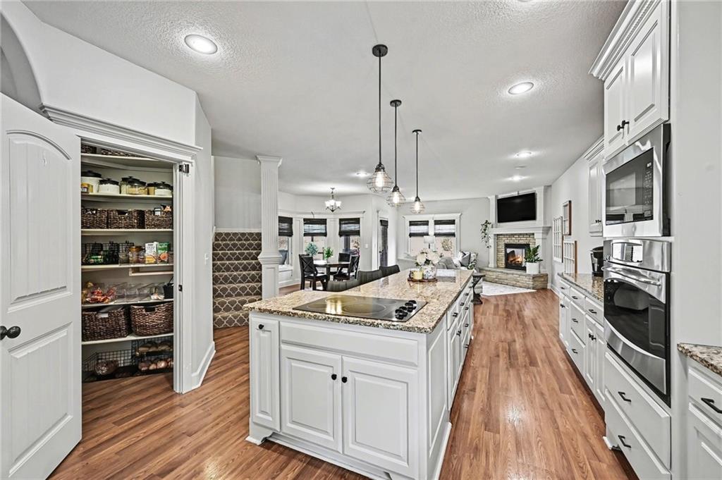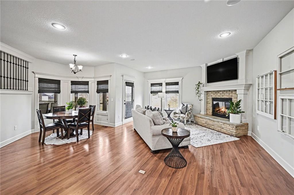 Welcome home! This 5 BR, 4.5 Bath 2-story home with 5,068 finished sq ft plus an additional 1,150 workshop in the basement, is ready for new owners. The main level has new paint and new carpet in the bedrooms and the formal living room, and includes an oversized primary bedroom suite with private bath and a large walk-in closet, with a walkout door to a screened patio. The 2 story-high vaulted ceilings in the formal living room and the dining room flow nicely into the kitchen/dining/hearth room, complete with newly painted cabinets, granite countertops, a spacious island, and gas fireplace. Ready for cozy evenings and easy entrance to screened-in porch to capture stunning sunsets. Main-level living with a laundry room right off the kitchen. The 3-Car garage has two garage door openers & features a utility sink. Second floor has its own HVAC system and includes a spacious loft overlooking the main-level living room and a hidden extra storage space over the garage. The second bedroom has a large walk-in closet & a private bathroom, which is also accessible from the loft area. Bedrooms three & four share a Jack & Jill bathroom with private sinks for each bedroom. The 2021 finished basement includes a large family room exiting to a covered patio, a built-in wine storage area, fireplace, and kitchenette with quartz counters, a luxury bath, a bedroom with private patio doors exiting to a covered patio, an exercise room, and extended finished area that could be converted to theater room, playroom, or extra extended living space. The generous 1,150 sq foot workshop off the finished basement includes a utility sink, a built-in workbench, exterior double doors for easy access to projects, storage, or hobby space. Stubbed for a 5th full bathroom. Outdoor features include manicured landscaping, full wrought-iron fencing, backs up to HOA greenspace & close proximity to a full playground, community center, pool, and walking trails. New, high-impact-resistant roof installed.