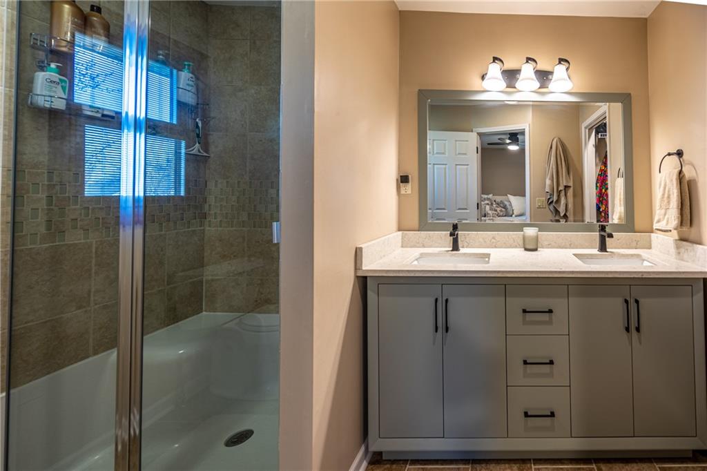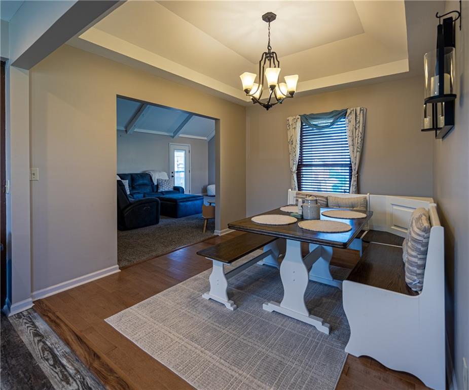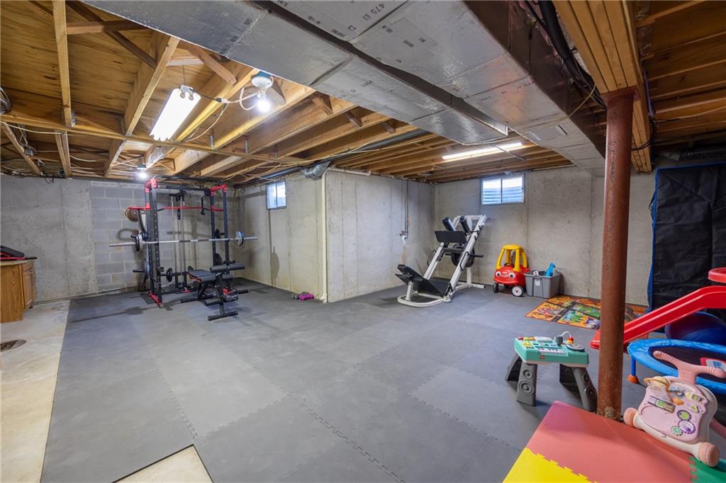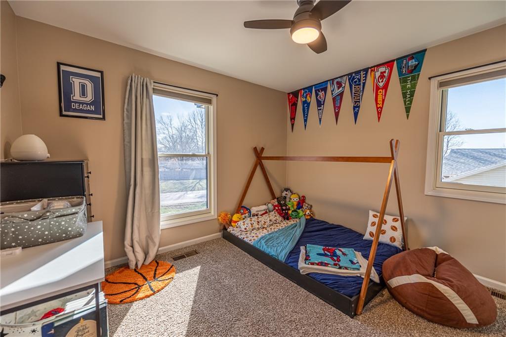 Beautifully maintained split-level with a layout that just makes sense. The main living space features vaulted ceilings with an exposed beam, a fireplace, and great natural light that makes the whole area feel open and inviting. The kitchen and bathrooms have been thoughtfully updated, giving the home a fresh, move-in ready feel. The primary bedroom includes a walk-in closet and its own private bathroom. You’ll also find an oversized 2-car garage, plus additional lower-level space for storage, a workout area, or a second living space. The backyard is fully fenced with a deck and shed, offering a great setup for everyday living or entertaining. The peach trees and lilies really shine in the spring and summer.