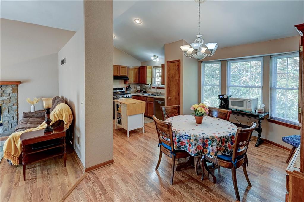 Welcome to this centrally located, move-in ready home nestled on a spacious lot in a serene, wooded setting. Backing directly to the Mahaffie Creek Trail—with easy access just around the corner—this property connects you to the Mill Creek/Gary L. Haller National Recreation Trail, offering over 20 miles of scenic trails and recreational opportunities. Enjoy added privacy with only one neighboring home and beautiful natural surroundings. Inside, you’ll find soaring vaulted ceilings and a thoughtfully designed layout. The dining area features a charming bay window overlooking the private, tree-lined backyard and flows seamlessly into the kitchen, complete with an enclosed pantry. The light-filled living room offers a cozy fireplace, creating a warm and inviting space for gathering. The main level includes a spacious primary suite with a private bath, along with two additional bedrooms and a full hall bath. The walkout lower level provides exceptional flexibility—ideal as a fourth bedroom, second primary suite, family room, or separate living quarters. This level includes a third full bath, generous closet space, and double glass doors that open to a peaceful patio with wooded views. Additional access points from the front entry and garage enhance convenience and functionality.